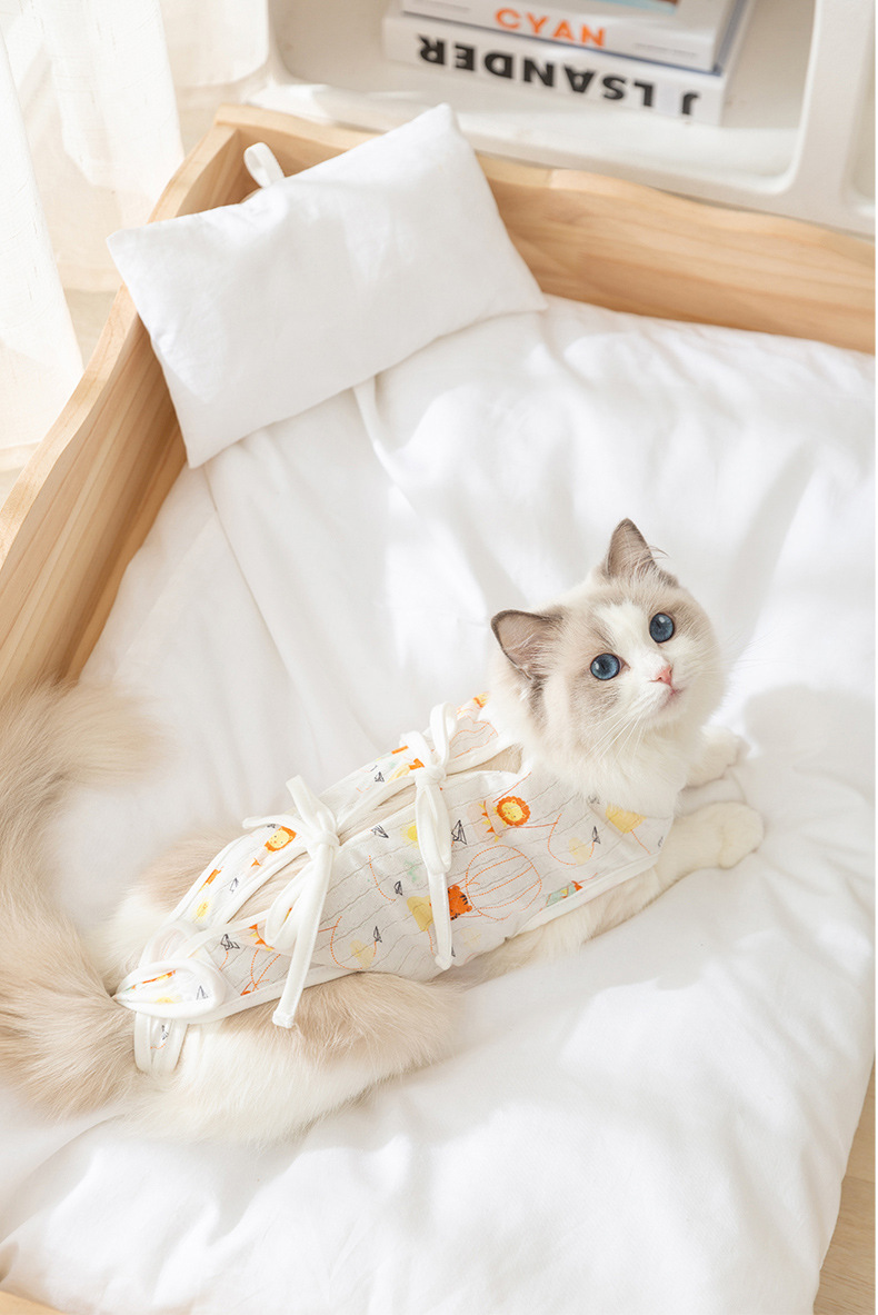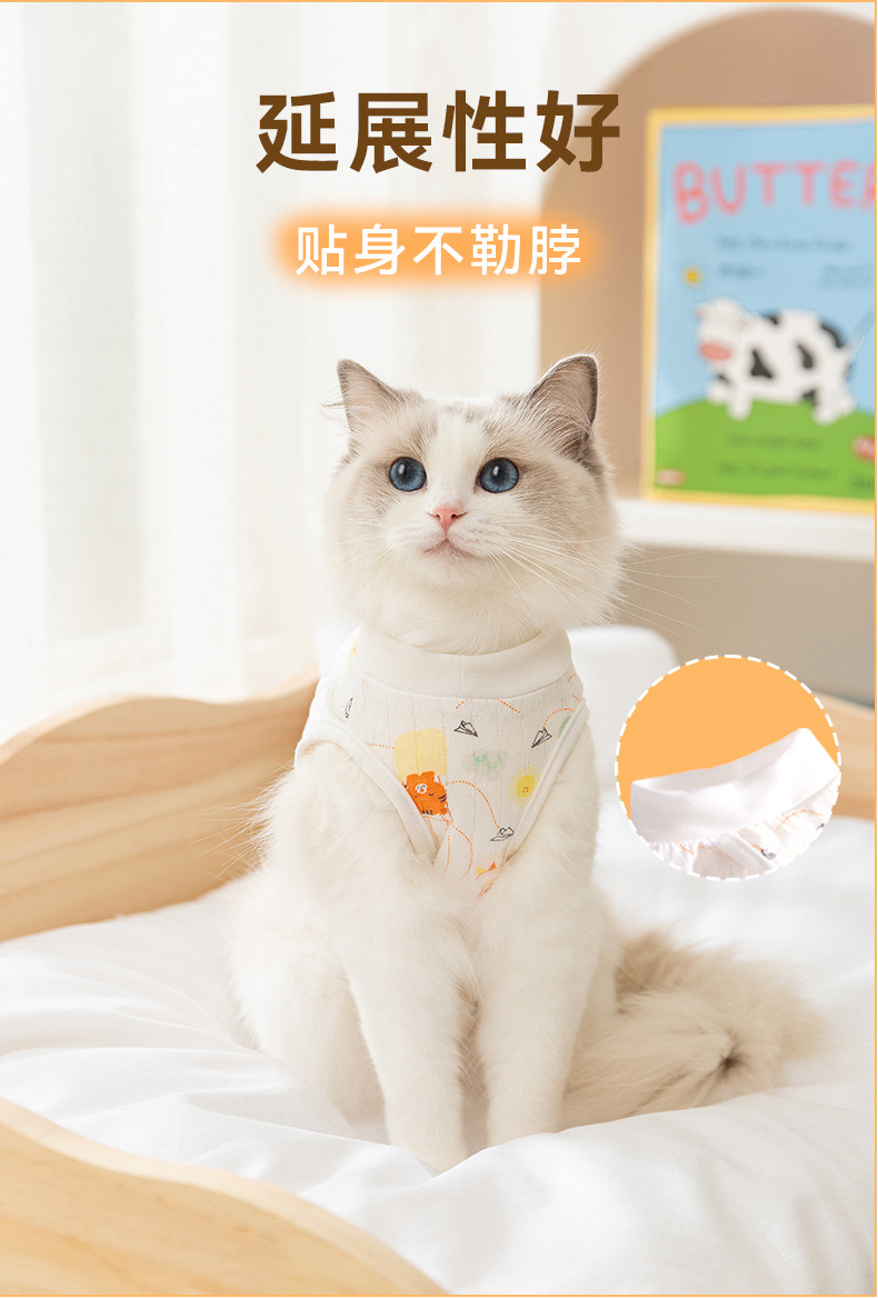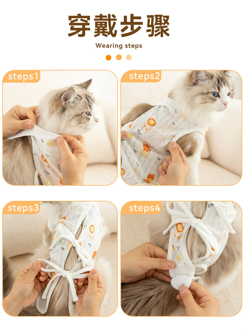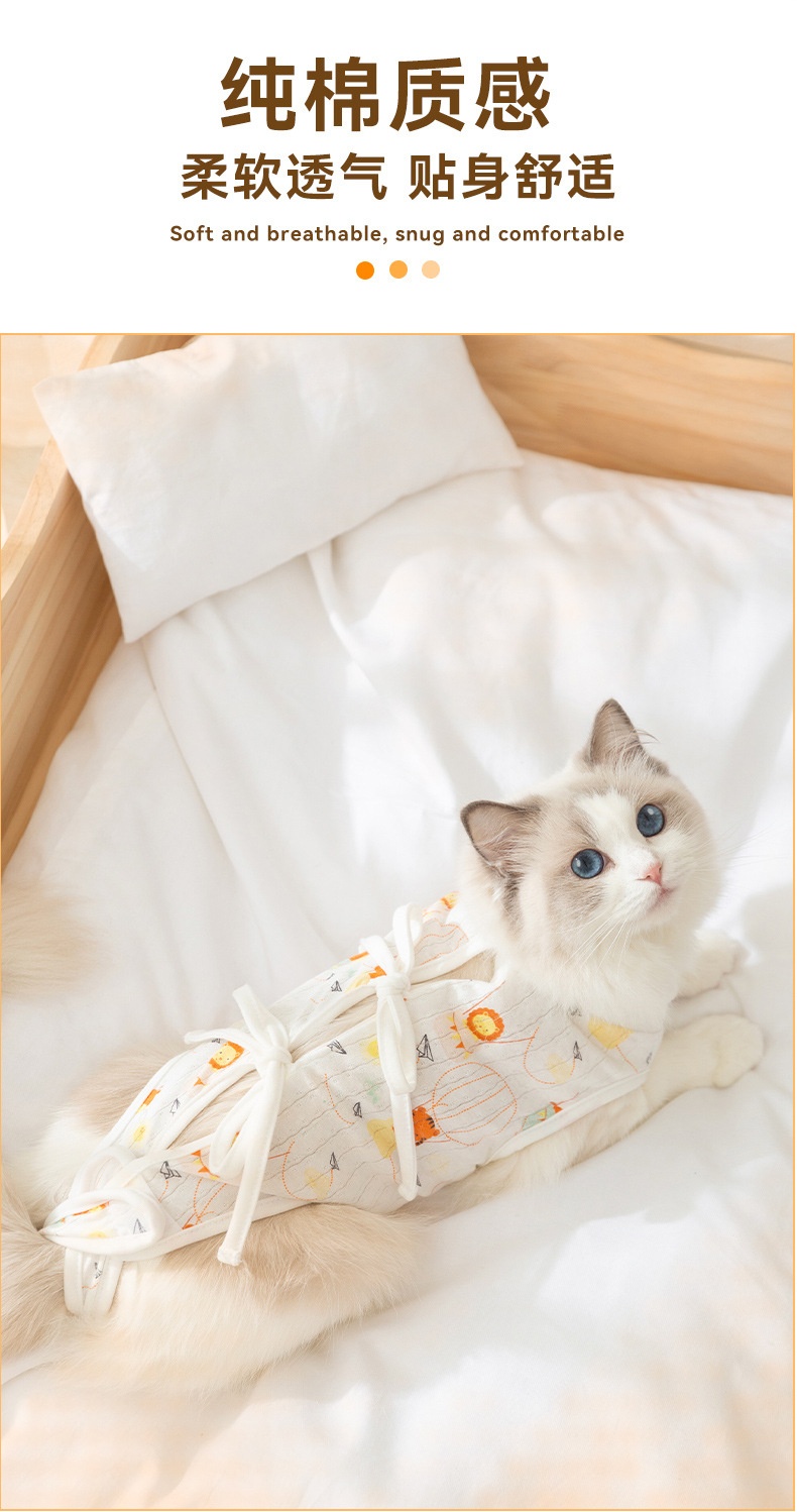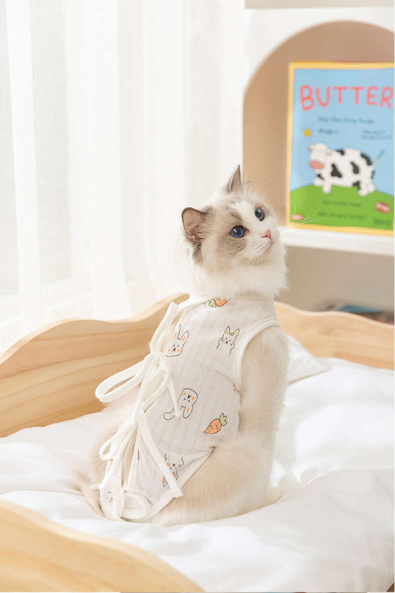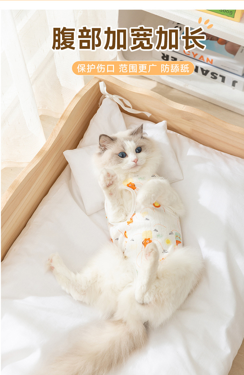 Cuatro estaciones respirantes gatos animados post-operatorio lindo viento ajustable correa esterilización ropa de destete ropa de mascotas