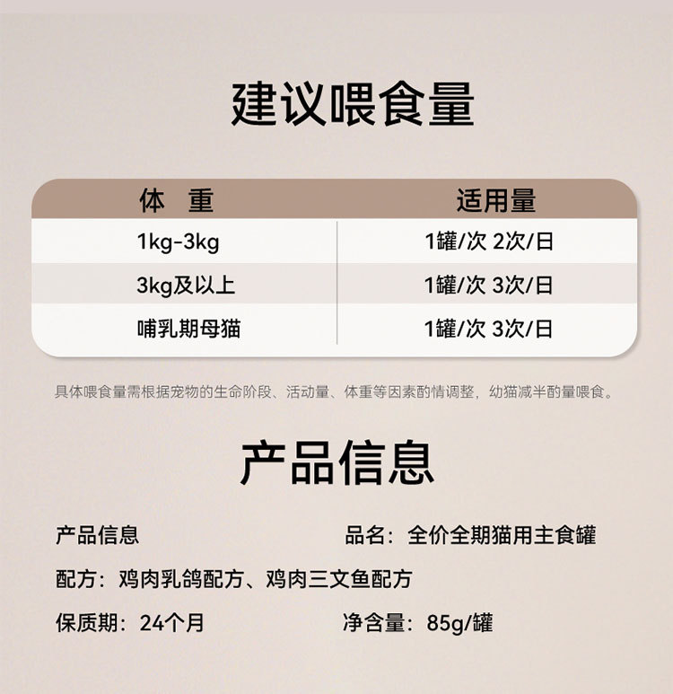 | Sabores | Fórmula de paloma de pollo 85g * 6 latas, fórmula de salmón de pollo 85g * 6 latas, mezcla 85g * 6 latas, fórmula de paloma de pollo 85g * 12 latas, fórmula de salmón de pollo 85g * 12 latas, mezcla 85g * 12 latas |