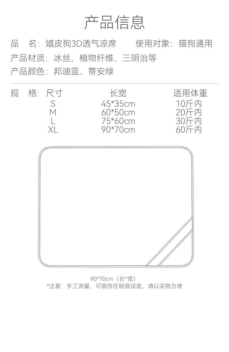 Primavera y verano, perros de tamaño mediano y grande, esterilla respirada 3D, refrigeración de verano, esterilla para perros, esterilla para perros, esterilla para gatos.