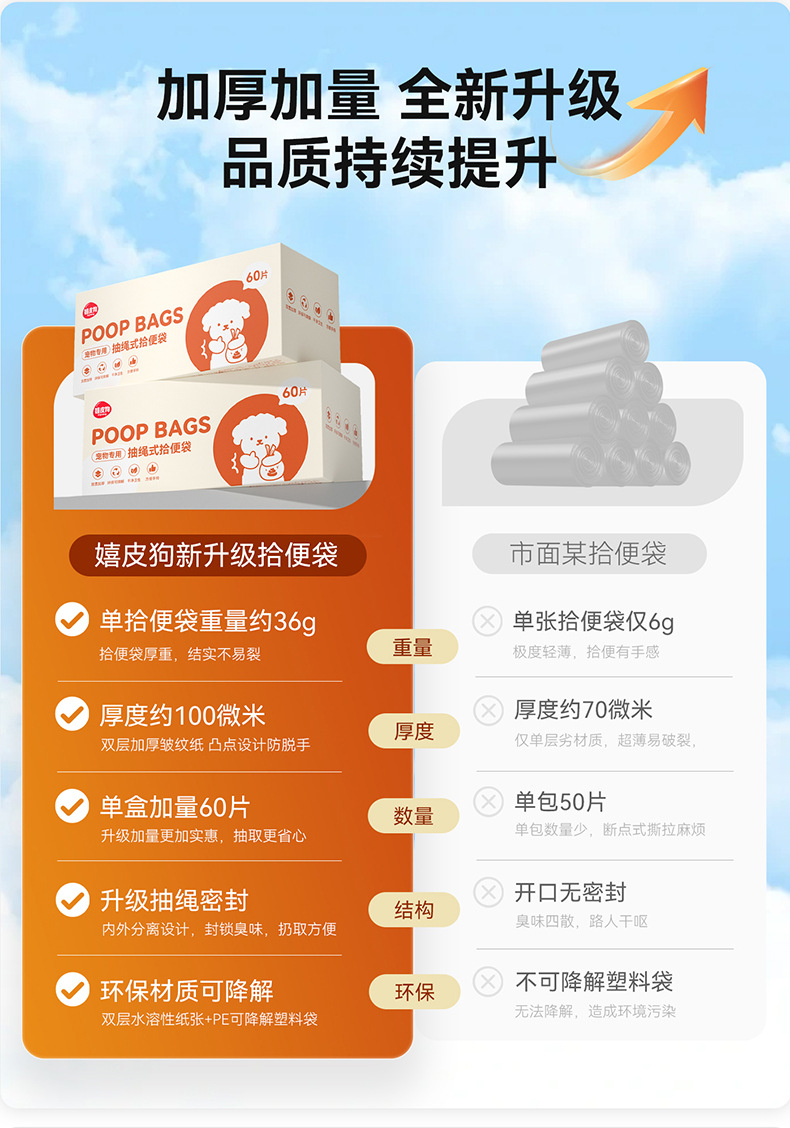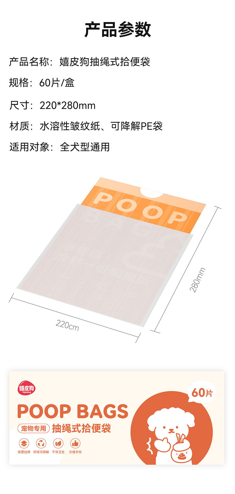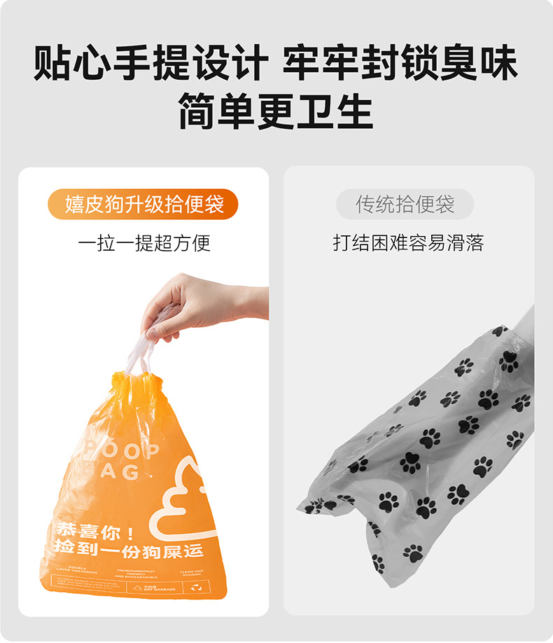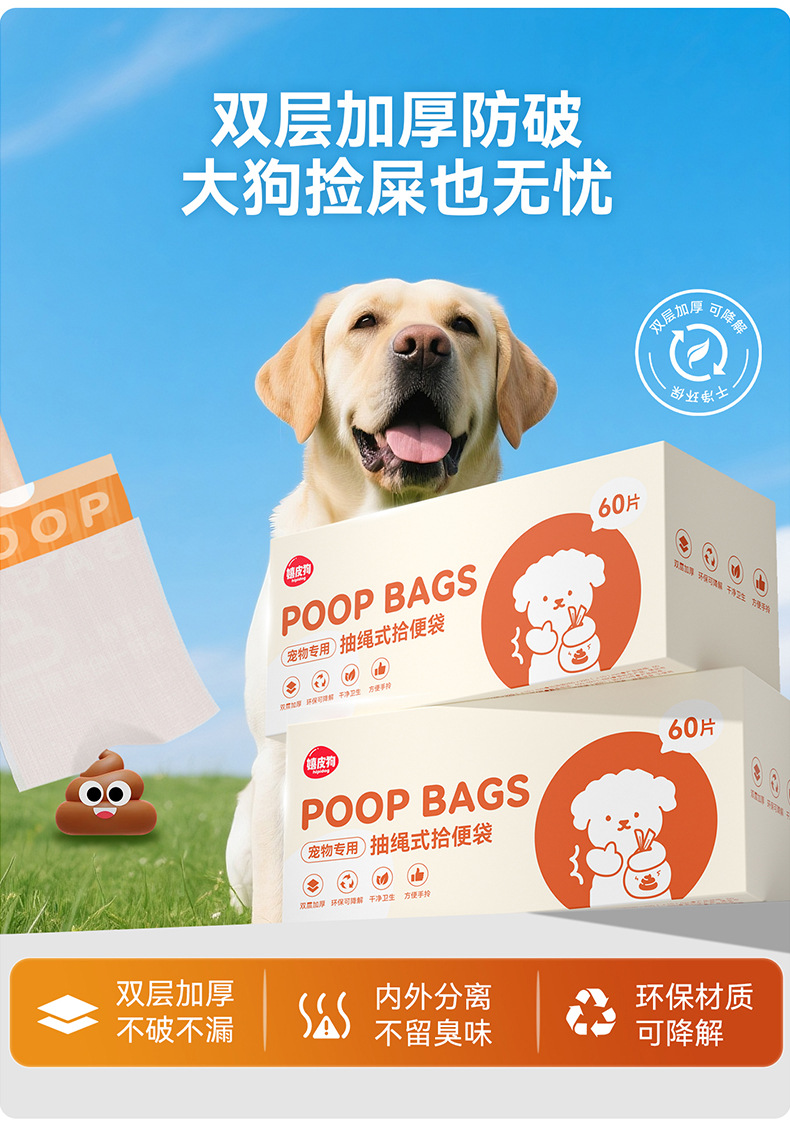 Bolsa de basura para mascotas, bolsa de recogida de heces para perros con cordón, limpieza, bolsa de recogida de heces de doble capa gruesa portátil para pasear al perro