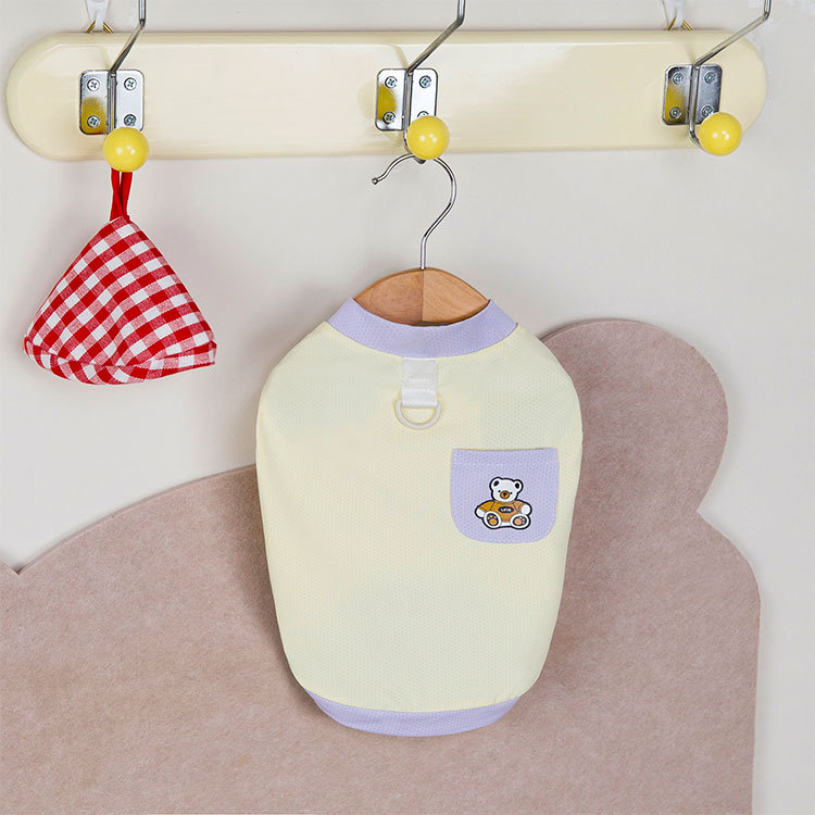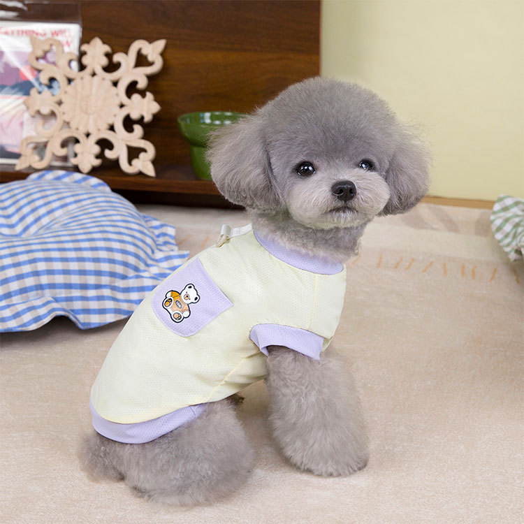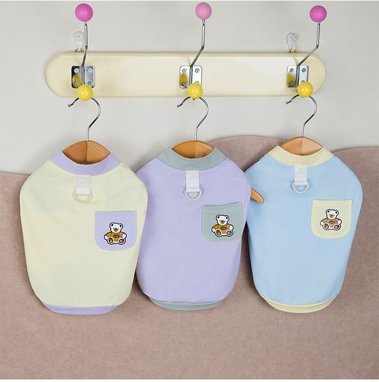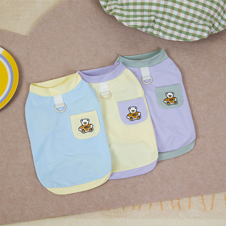 Primavera y verano perro lindo macaron bolsillo oso camiseta perro pequeño y mediano peluche bichón gato mascota ropa