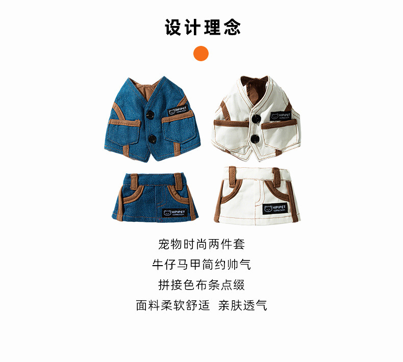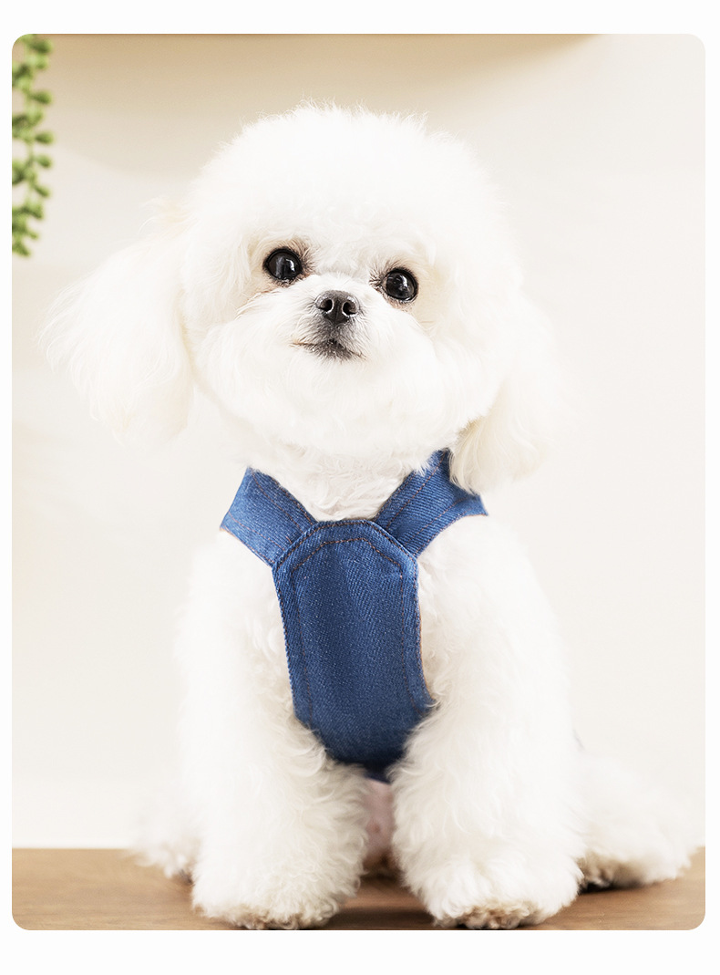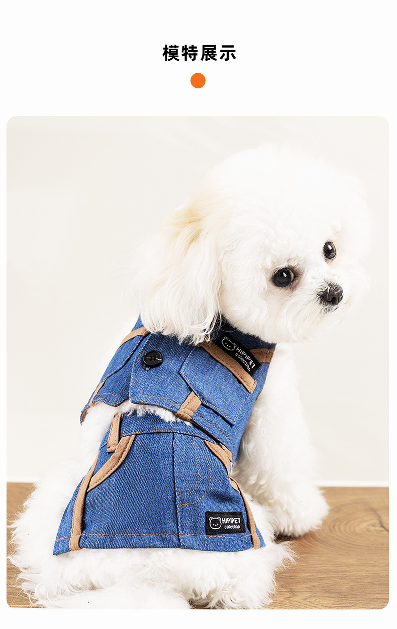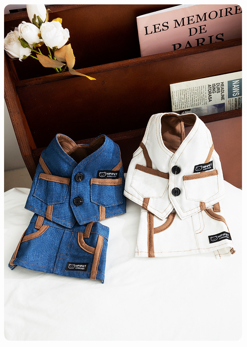 Primavera y verano coreano perros de moda chaleco de vaquero set gato chaleco de viento de moda dos piezas set de ropa de perro