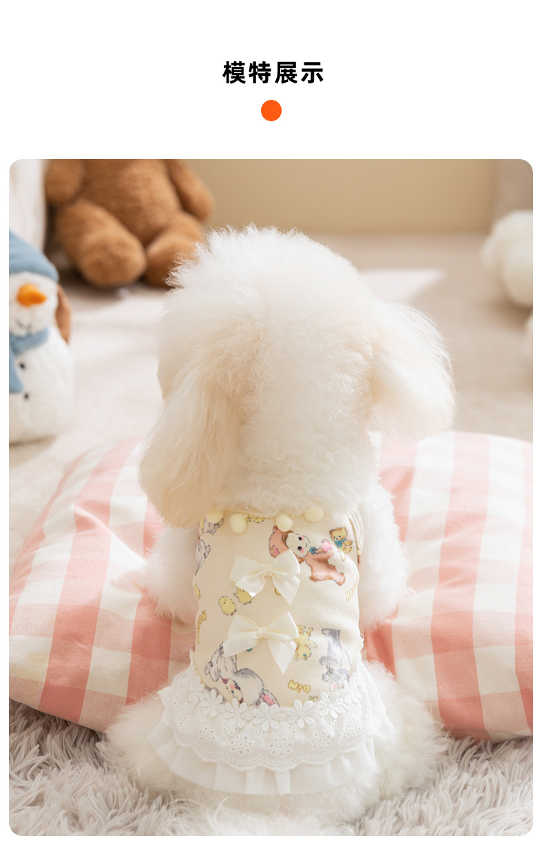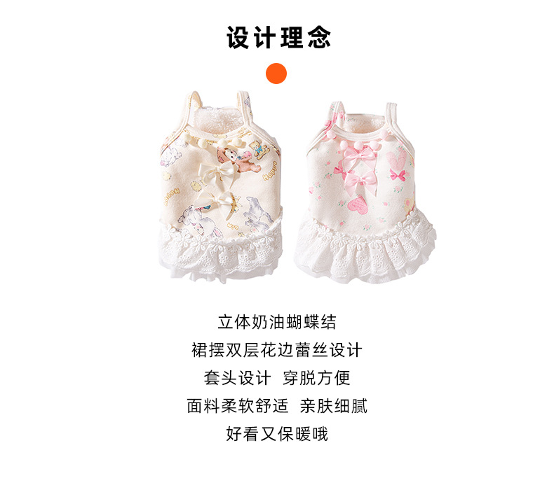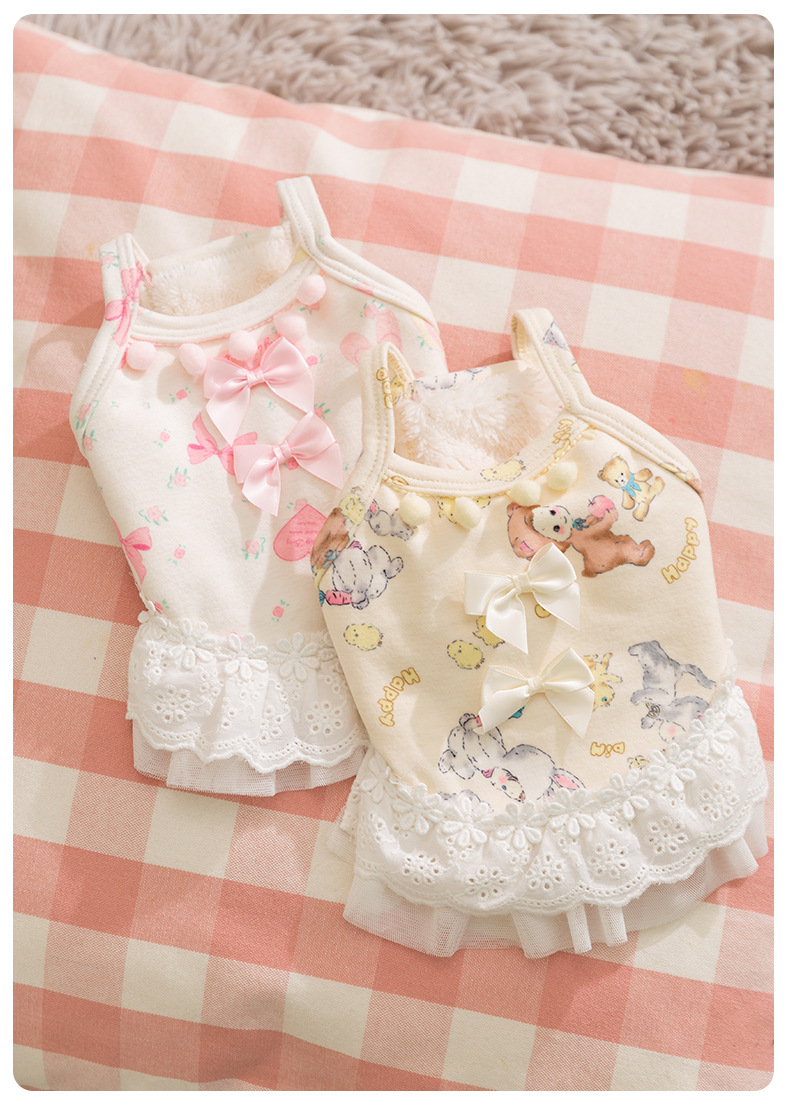 Otoño e invierno perro engrosamiento más terciopelo princesa viento cálido arco encaje chaleco falda gato falda ropa para mascotas