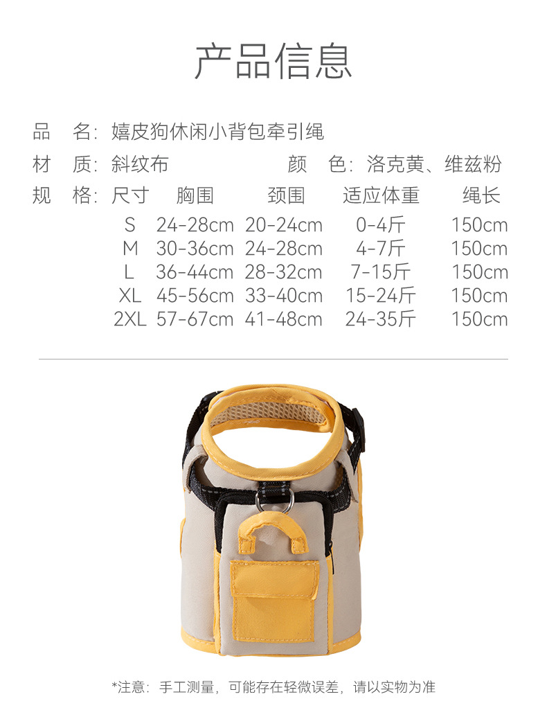 Primavera y verano, salida para perros, mochila pequeña, correa, cuatro estaciones, cuerda para pasear perros, chaleco, gato, cuerda para mascotas