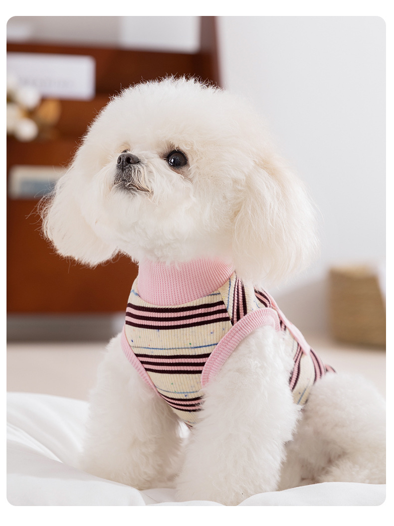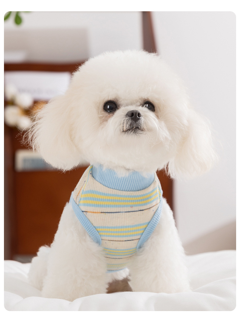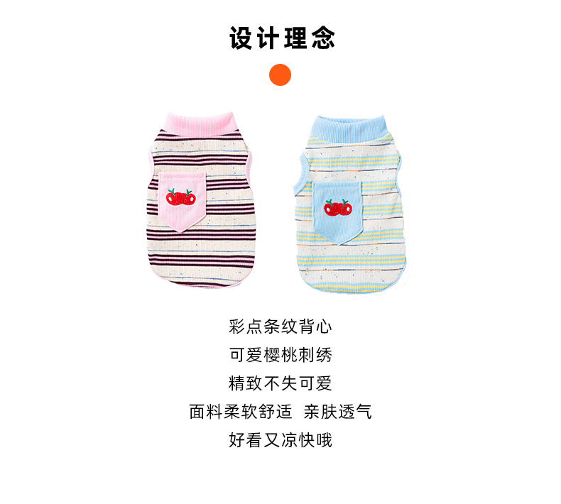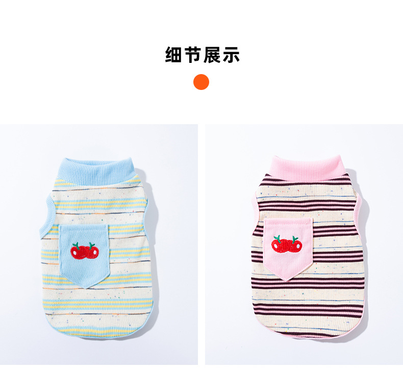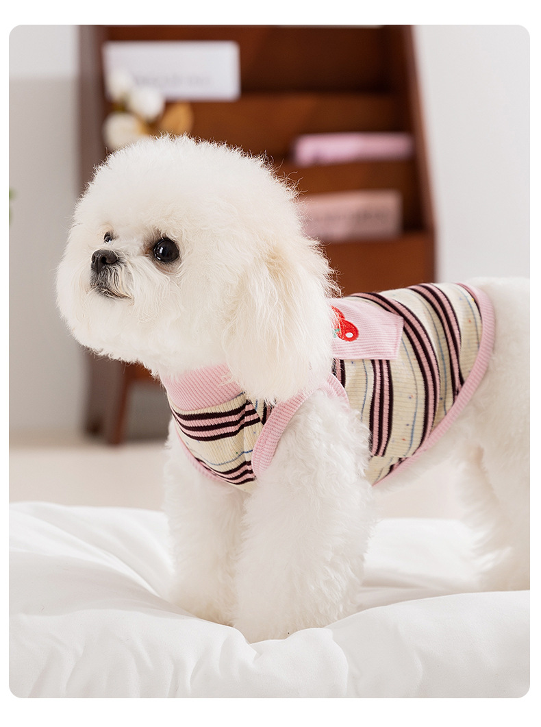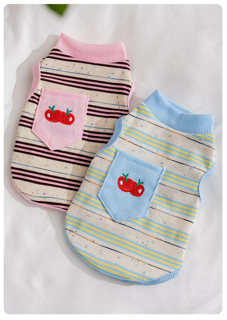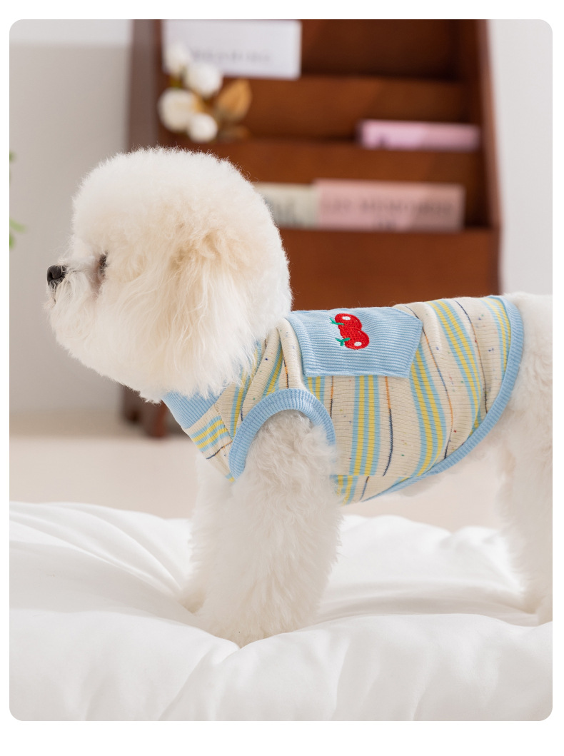 Perro primavera verano transpirable lindo chaleco a rayas bordado de cereza vestido de dos patas de gato ropa de peluche para mascotas