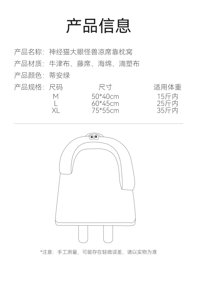 Primavera y verano Gato Ojos grandes Monstruo Cojín Almohada Nido para gatos Sofá fresco Nido para perros Refrescante Nido para mascotas Almohadilla para perros