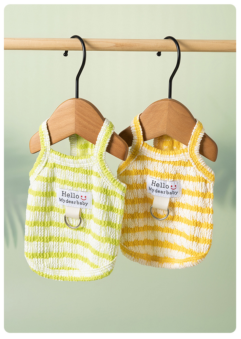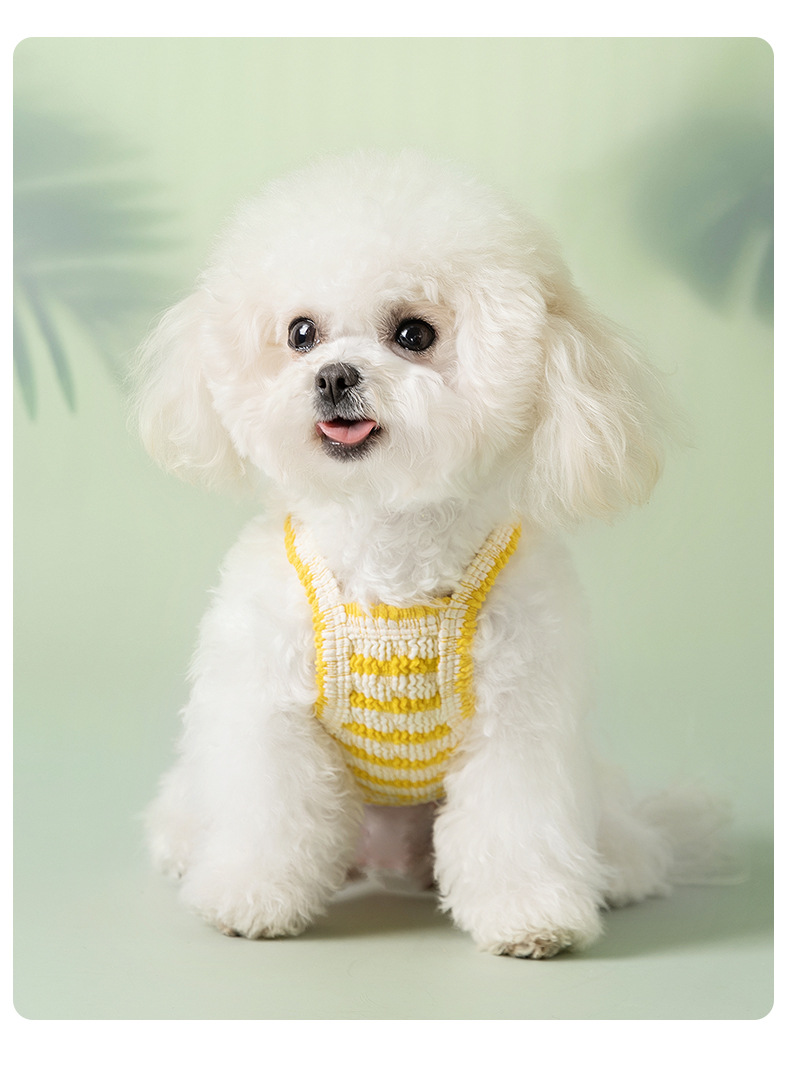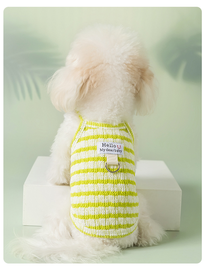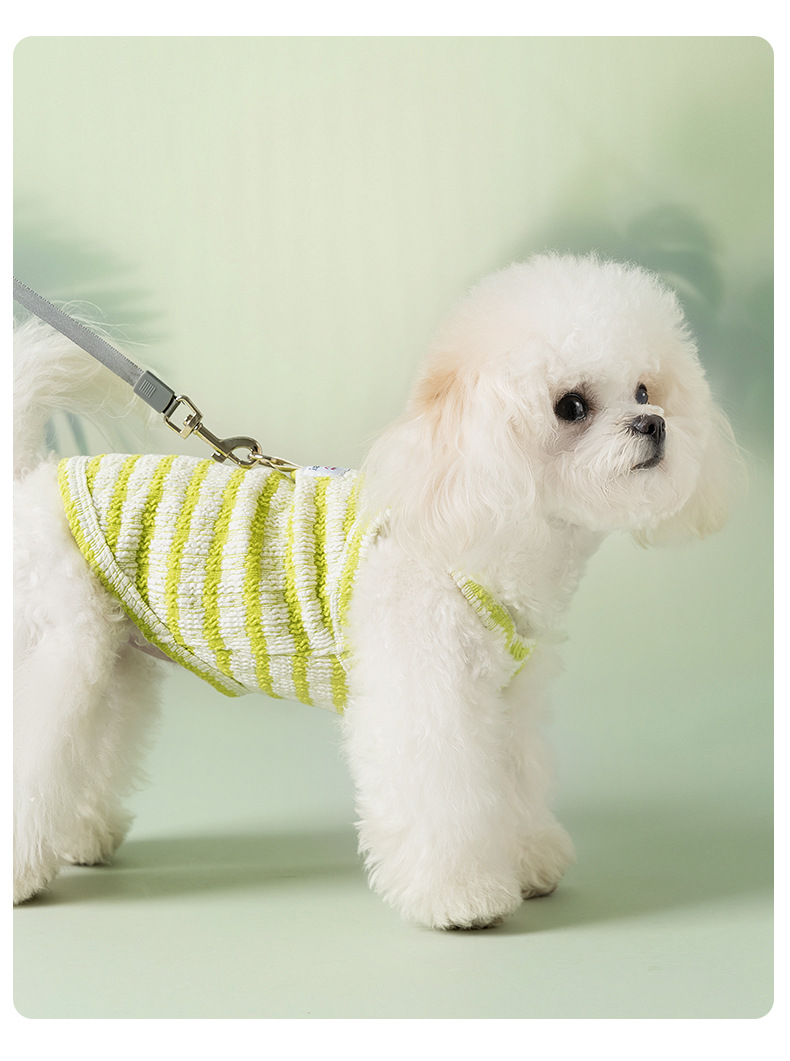 Perro primavera verano delgado transpirable peluche bichón sándwich galleta a rayas gato pequeño perro ropa para mascotas