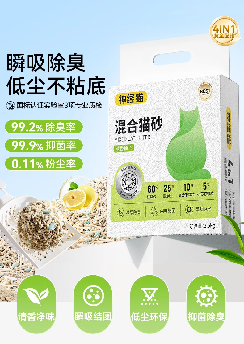 Potente desodorización para mascotas, arena mixta, pomelo fragante, té verde, tofu, arena para gatos, arena para gatos, arena para gatos, tofu para gatos, arena para gatos