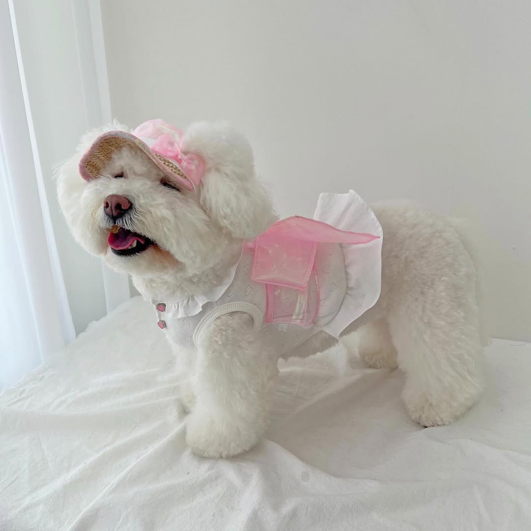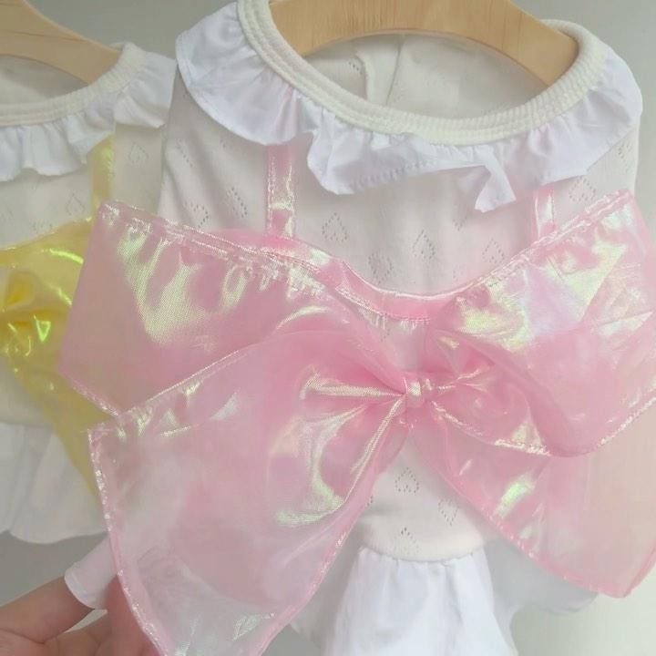 Primavera y verano perro princesa viento dama fluir gran lazo vestido de algodón falda de gato ropa para perros