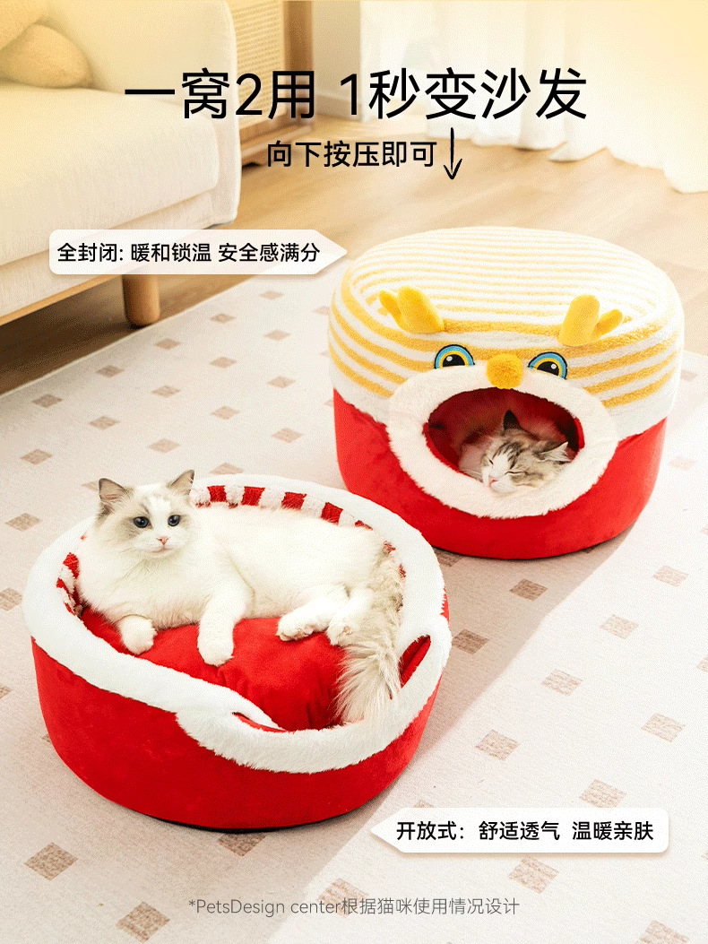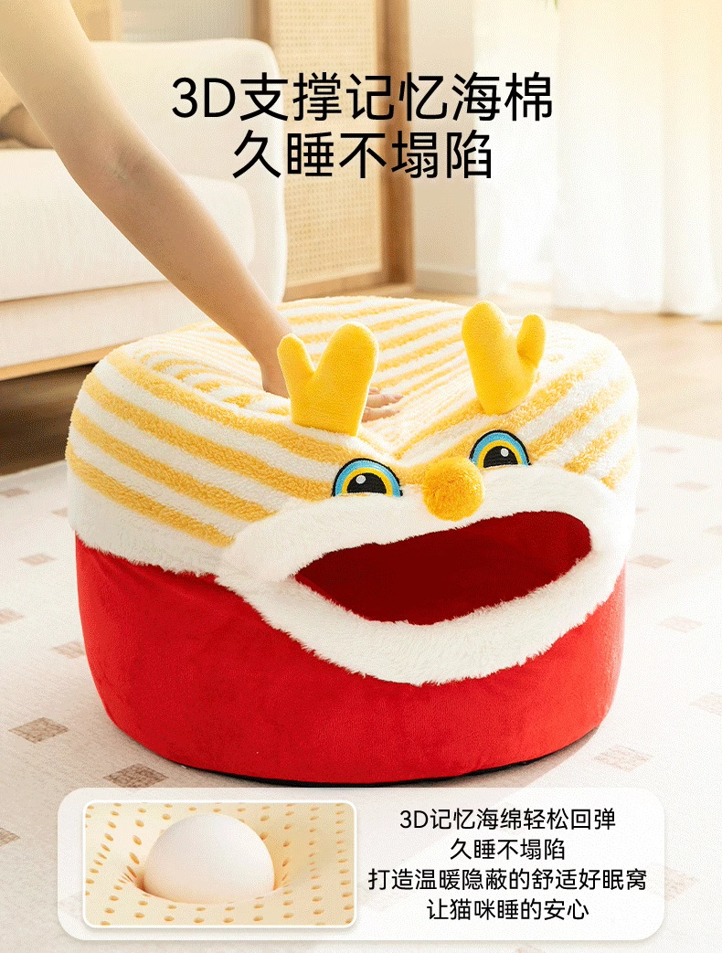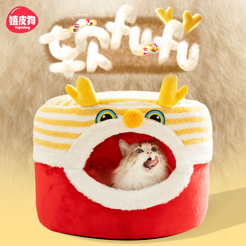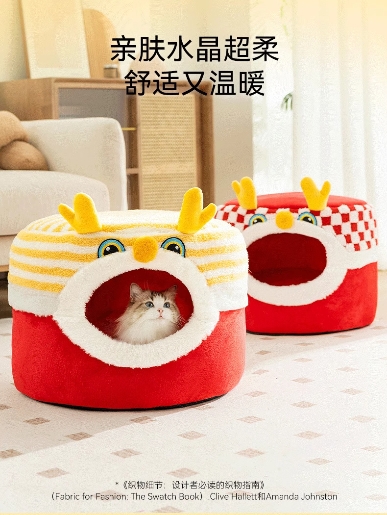 Otoño y invierno Año Nuevo gato Danza del Dragón taburetes gato nido semi-cerrado cálido perro nido mochila festiva a prueba de viento mascota nido