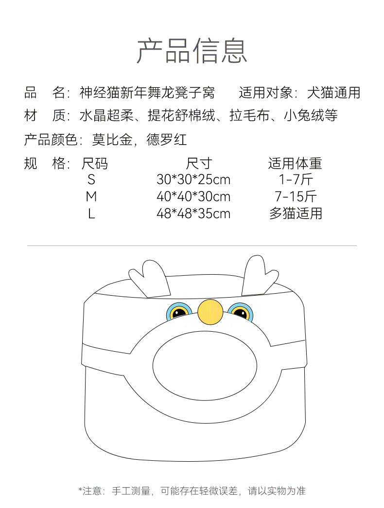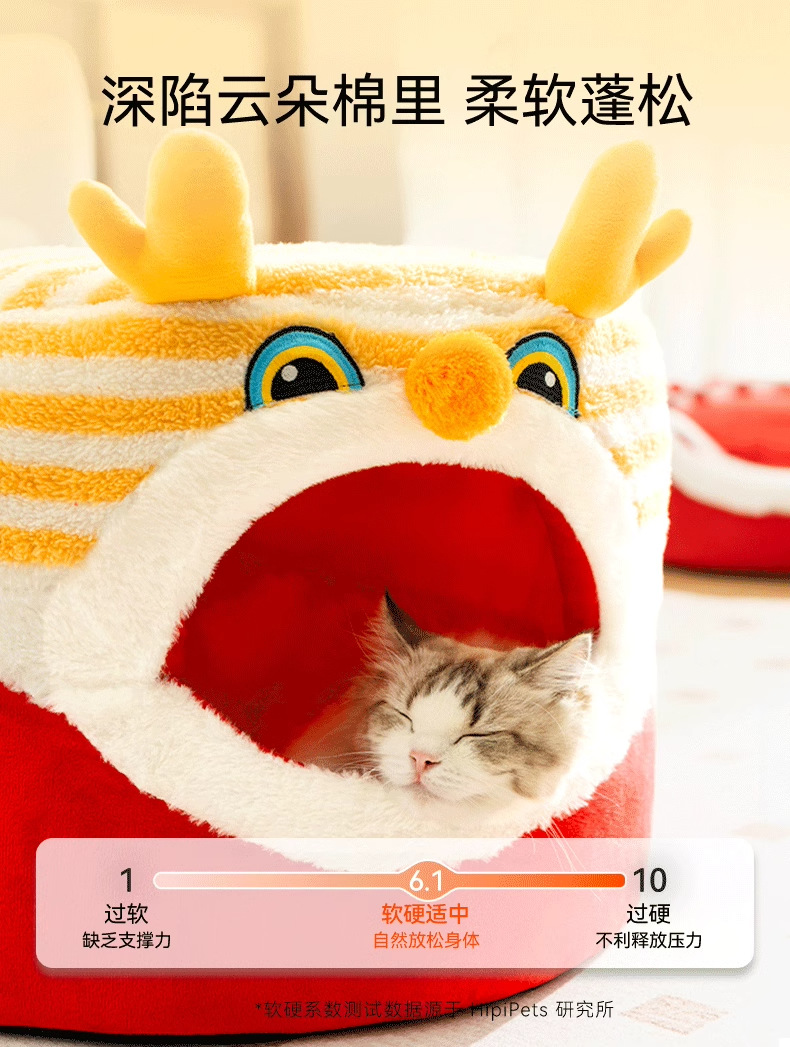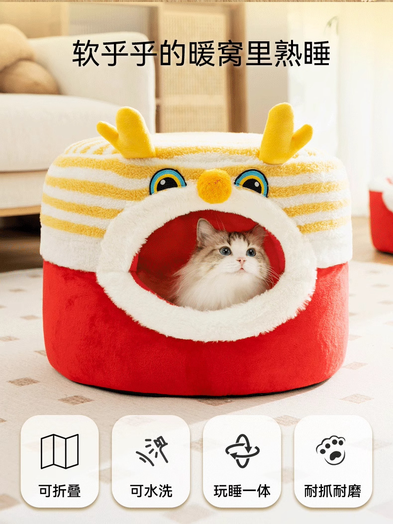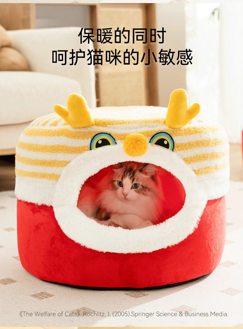 Otoño y invierno Año Nuevo gato Danza del Dragón taburetes gato nido semi-cerrado cálido perro nido mochila festiva a prueba de viento mascota nido