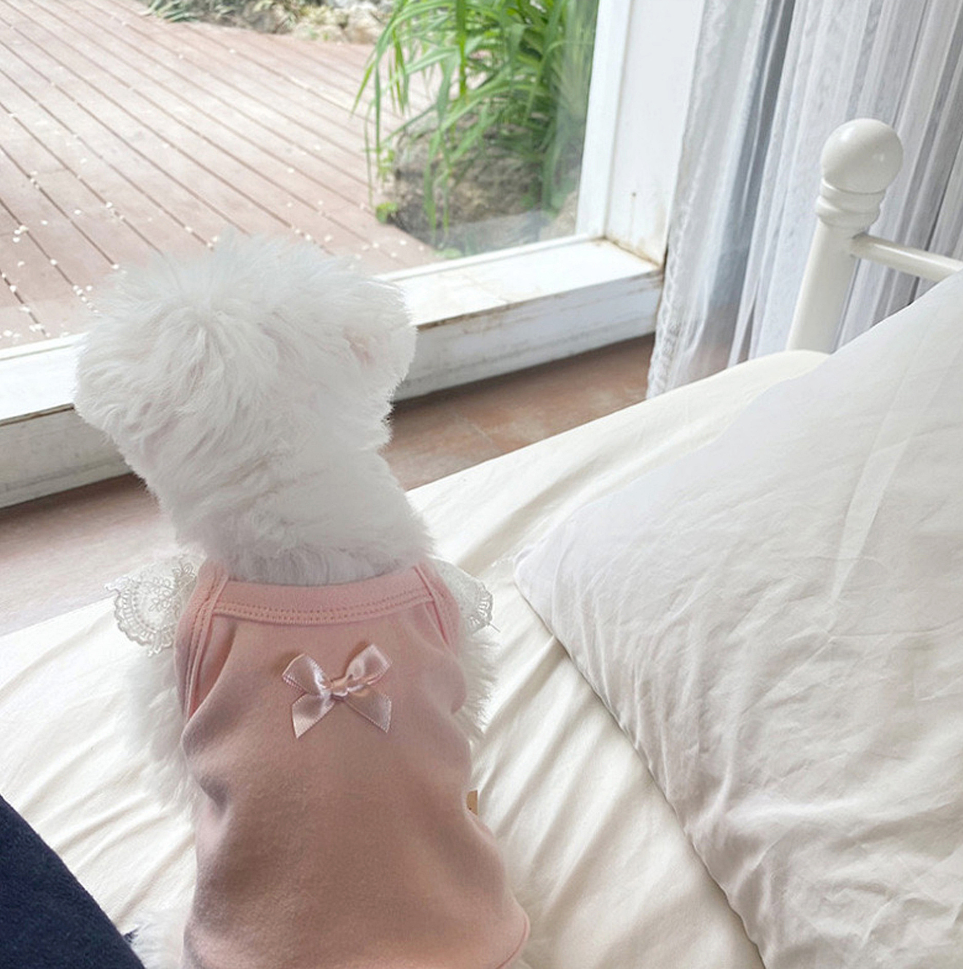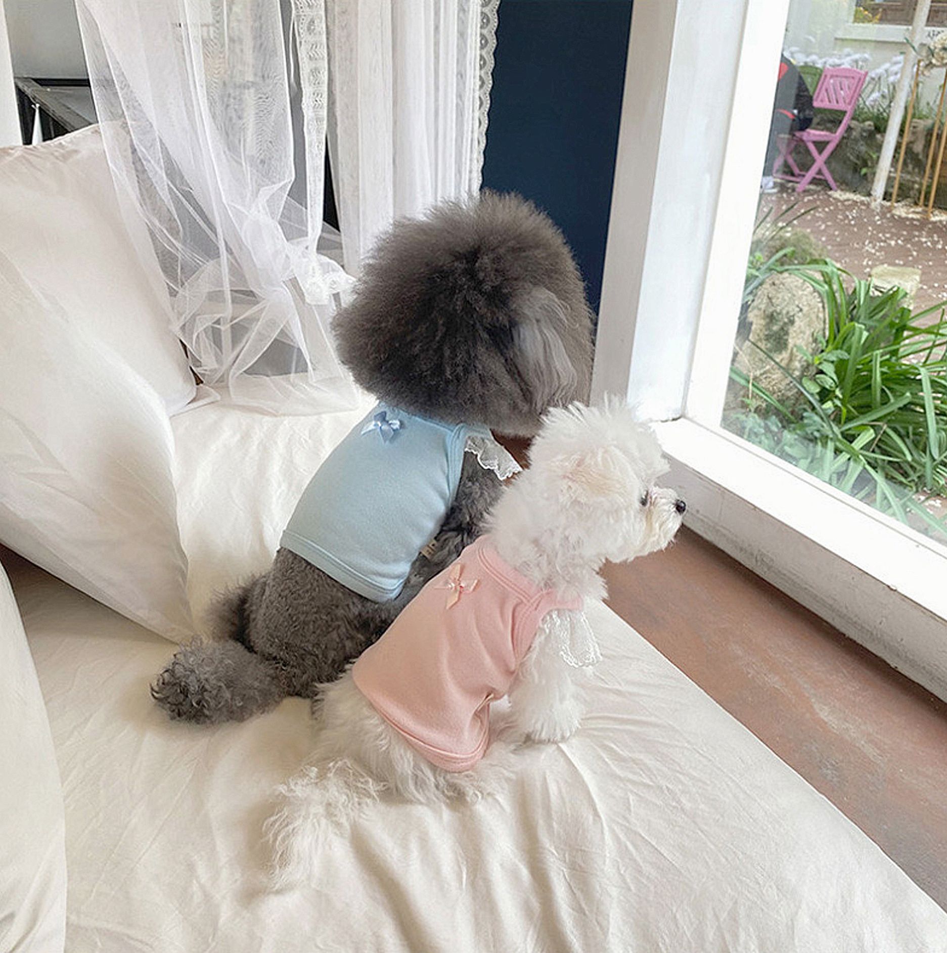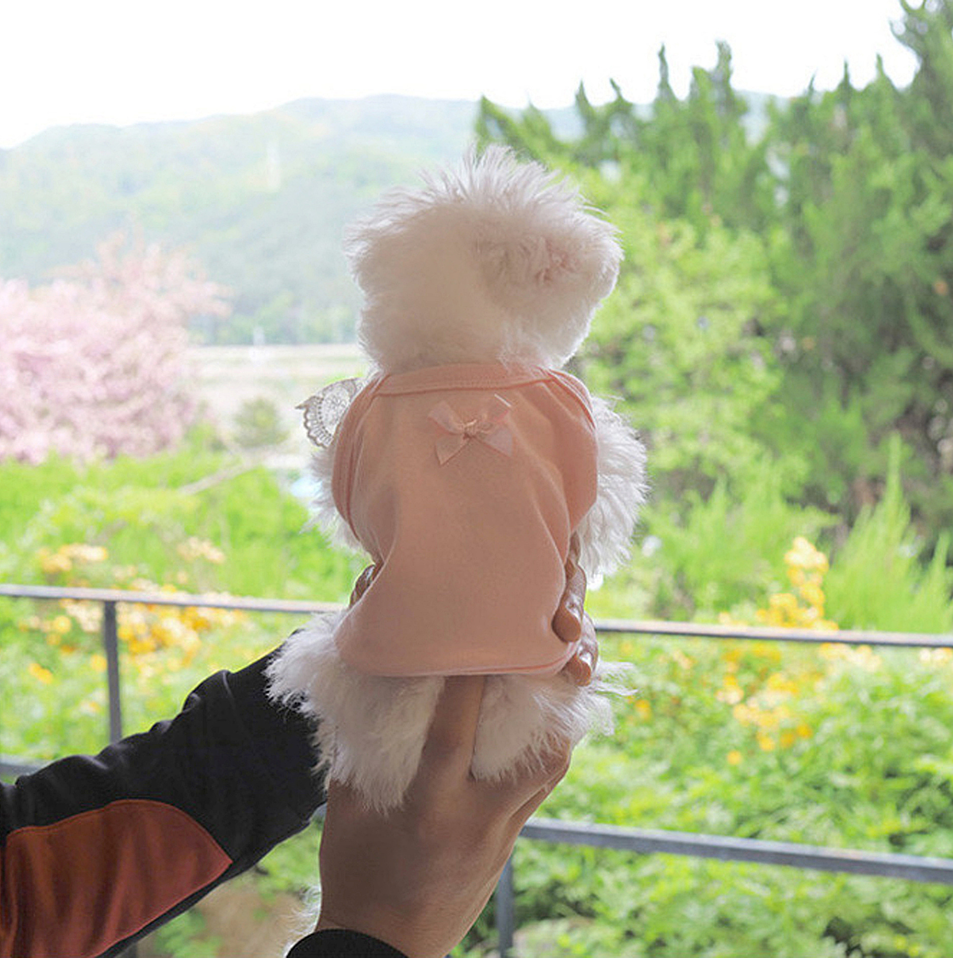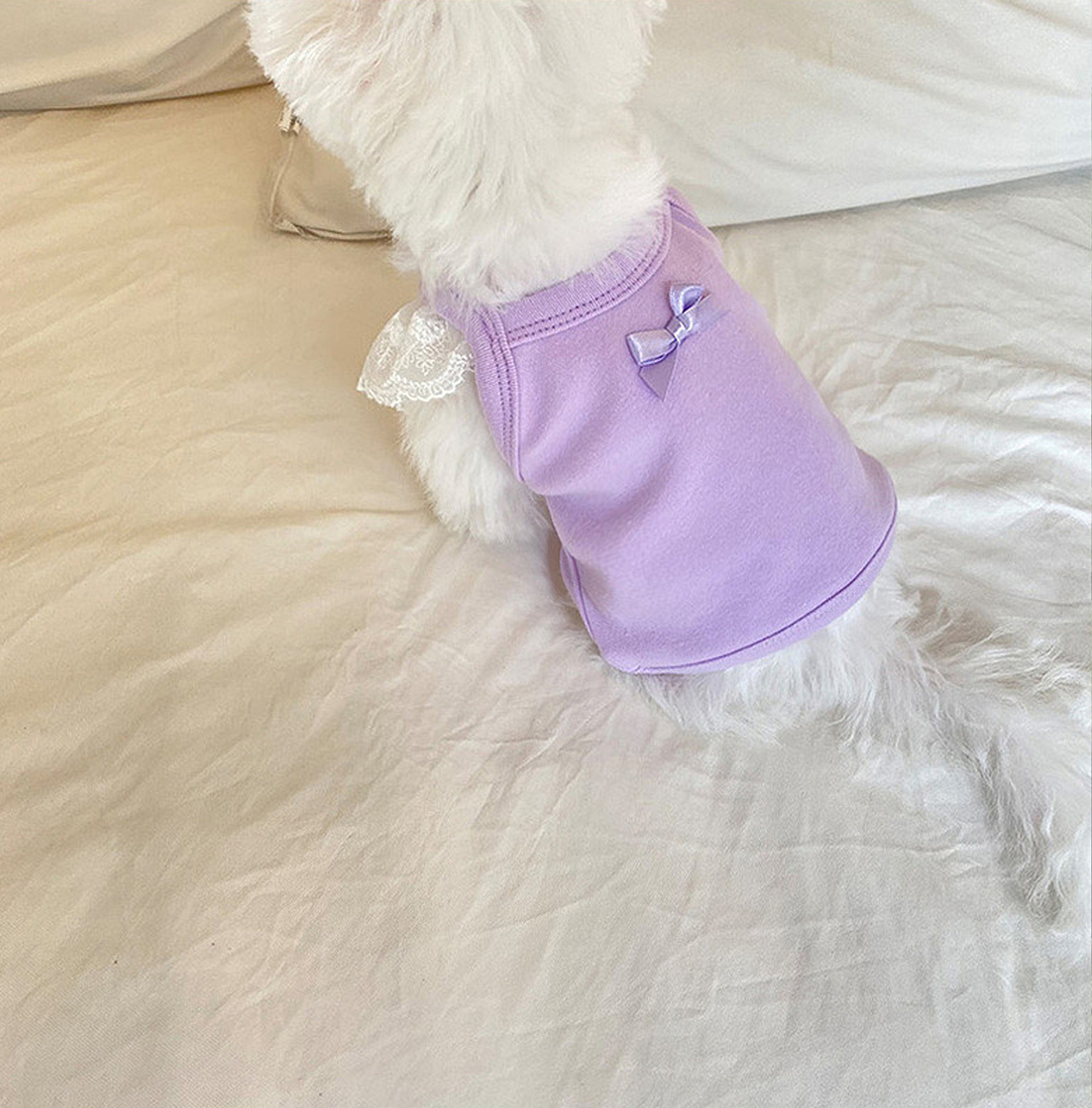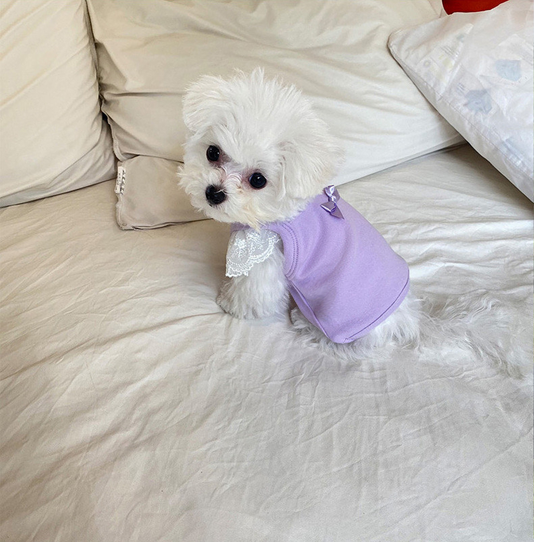 Primavera y verano perros princesa coreana color caramelo de encaje chaleco de manga volante gato Teddy Bo Mei ropa de mascotas