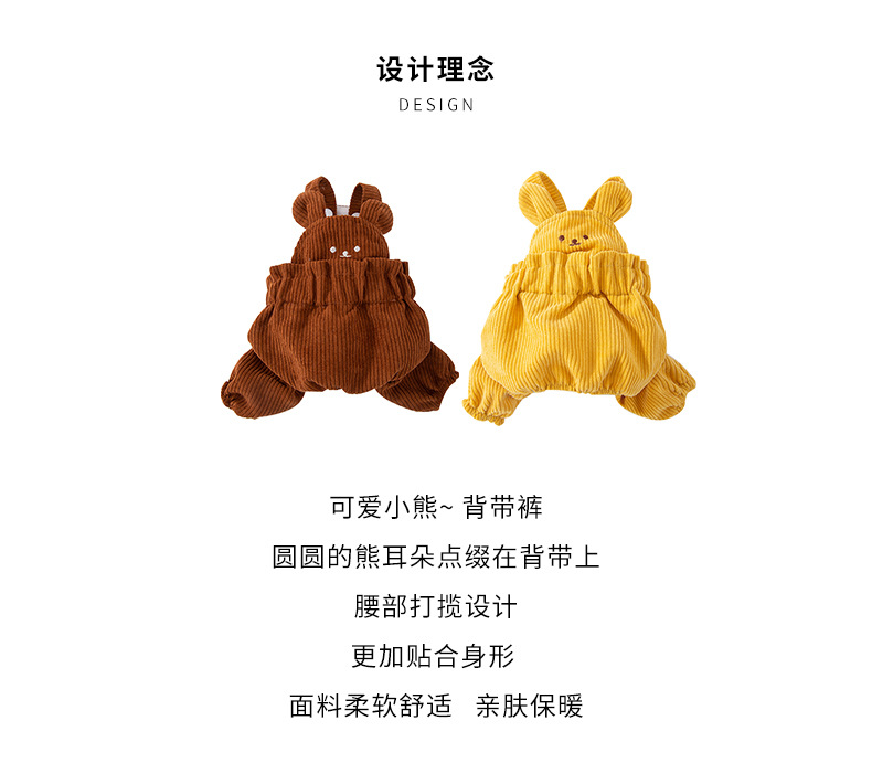 Estilo coreano Otoño e Invierno perro oso lindo mono de pana traje mascota gato de cuatro patas ropa para perros