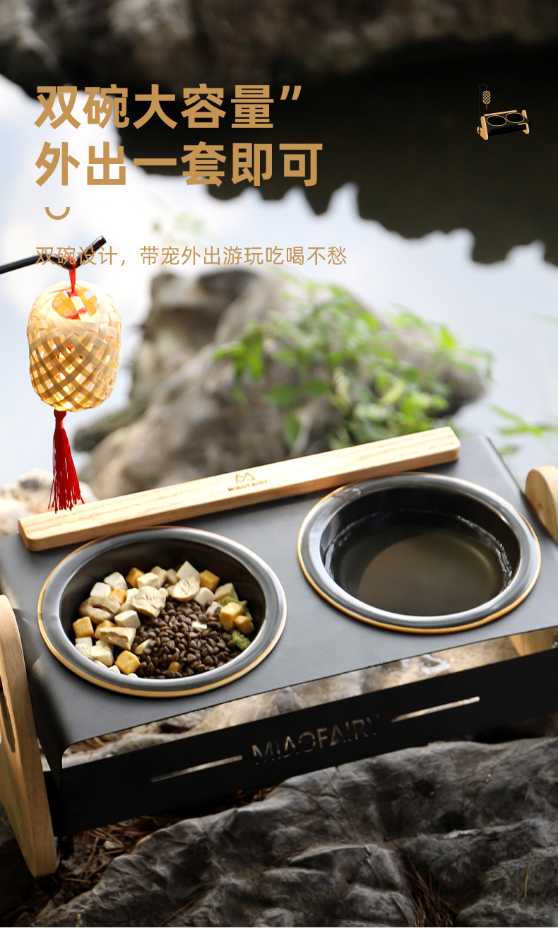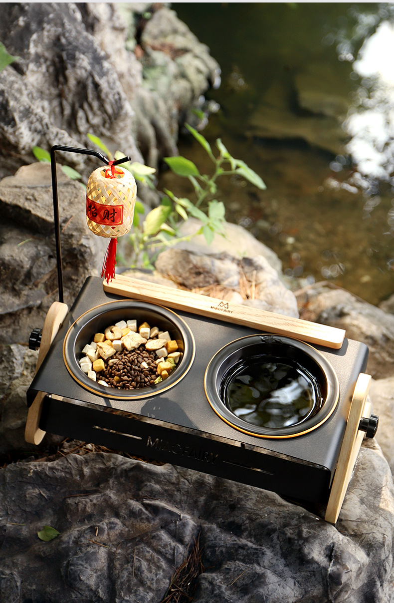 Perro portátil al aire libre acampando gatos retro cerámica alta pie doble tazón tazón para perros tazón para gatos pequeños perros artículos de tazón para mascotas
