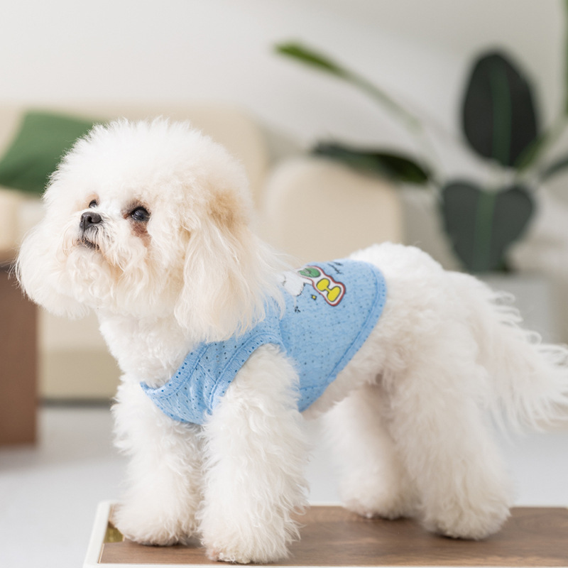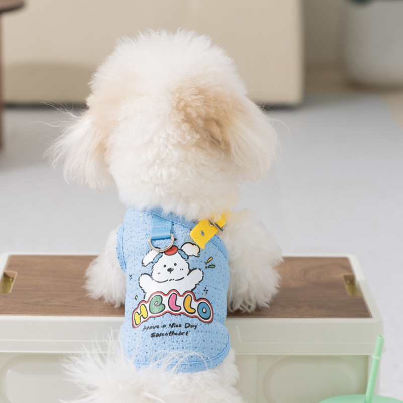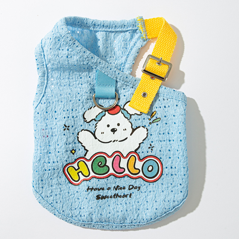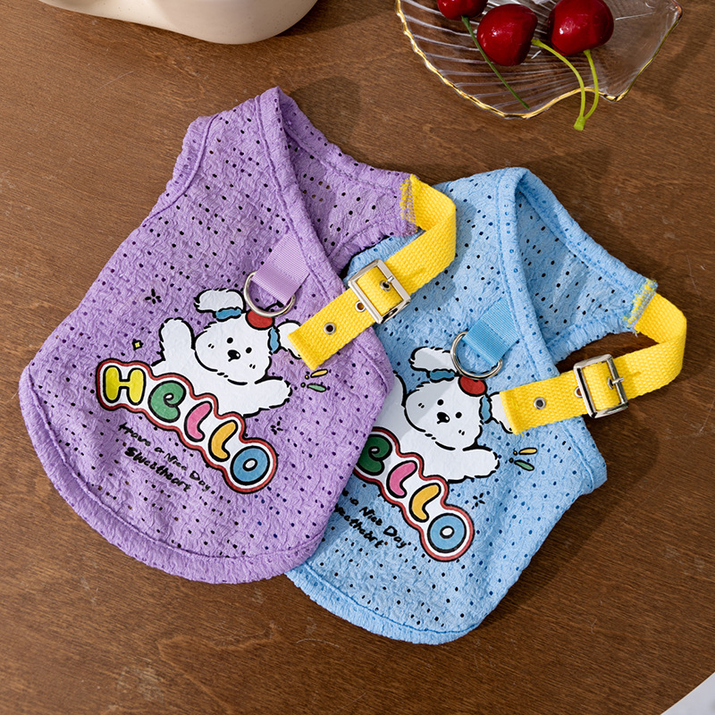 Primavera y verano perros lindos perros correa hueca impresa chaleco gatos perros pequeños y medianos peluche ropa de perro