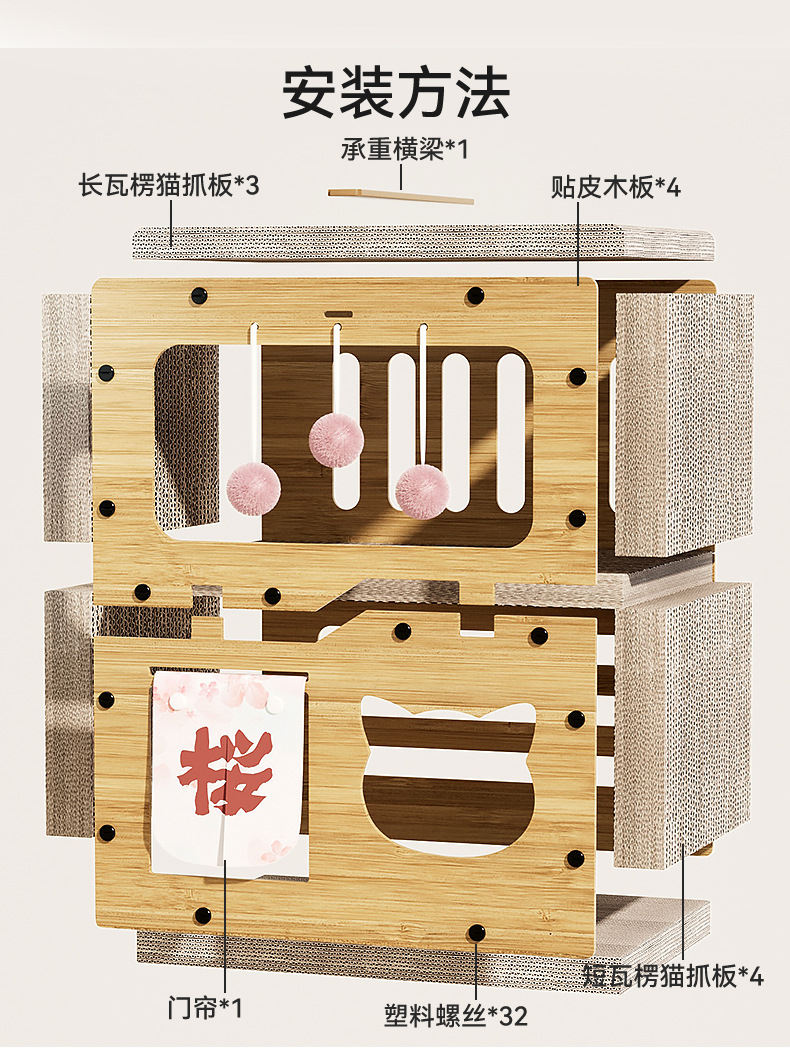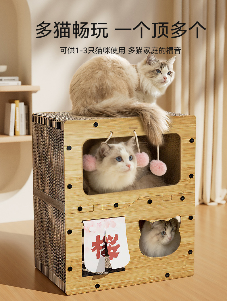 Gato villa para gatos de tres capas para jugar y dormir en una mansión tabla de agarre para gatos resistente al desgaste y resistente al agarre de papel corrugado nido para gatos juguetes para gatos