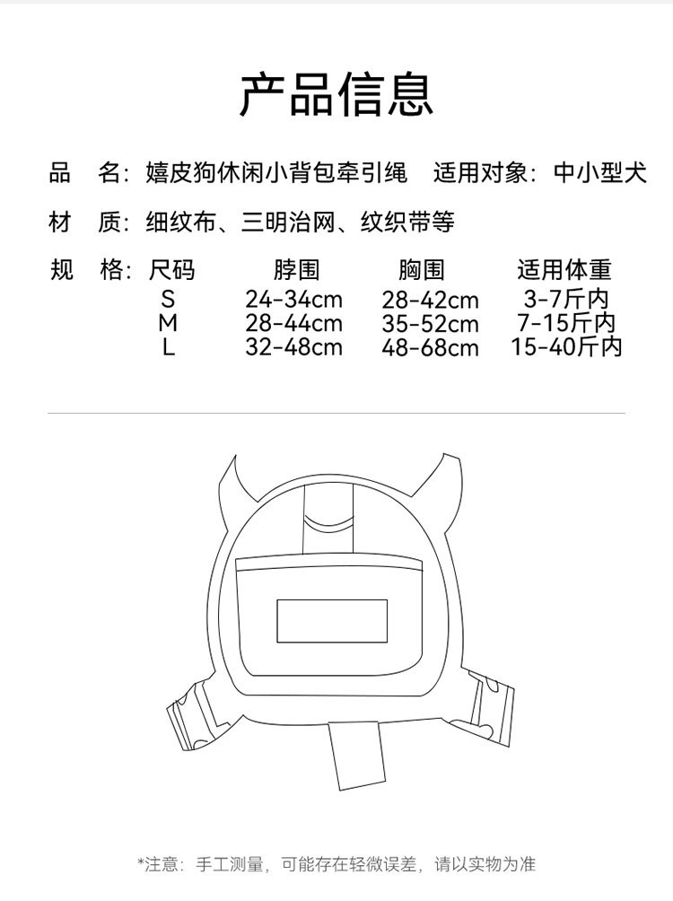 Mochila tridimensional de color en contraste, cuerda de tracción en forma de I para mascotas multifunción para perros, cuerda de paseador anti-liberación ajustable para gatos