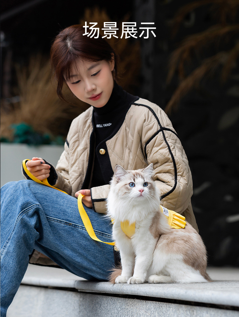 Gato fuera chaleco vestido en una cuerda de tracción de dopamina para perros Teddy para caminar cuerda para perros cuerda para mascotas