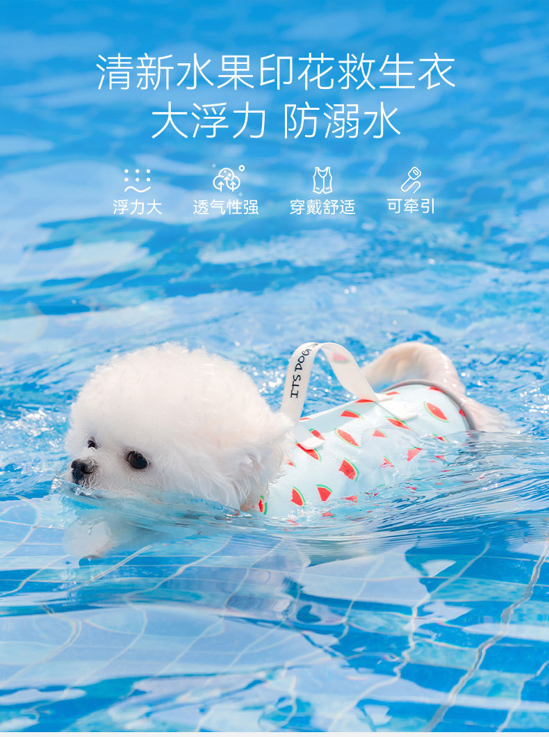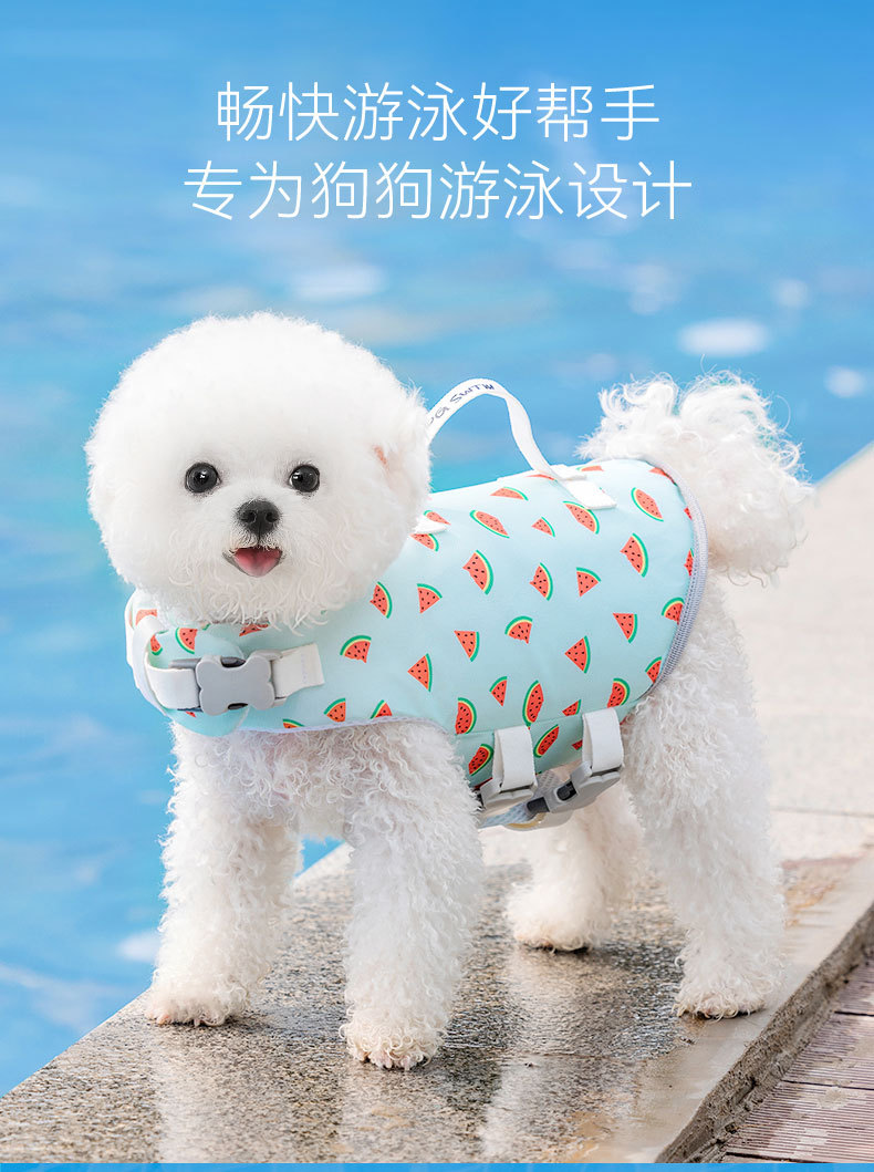 Verano perro fruta sandía impreso salvavidas pequeño perro Teddy ropa para mascotas flotabilidad natación ropa especial