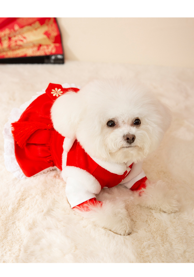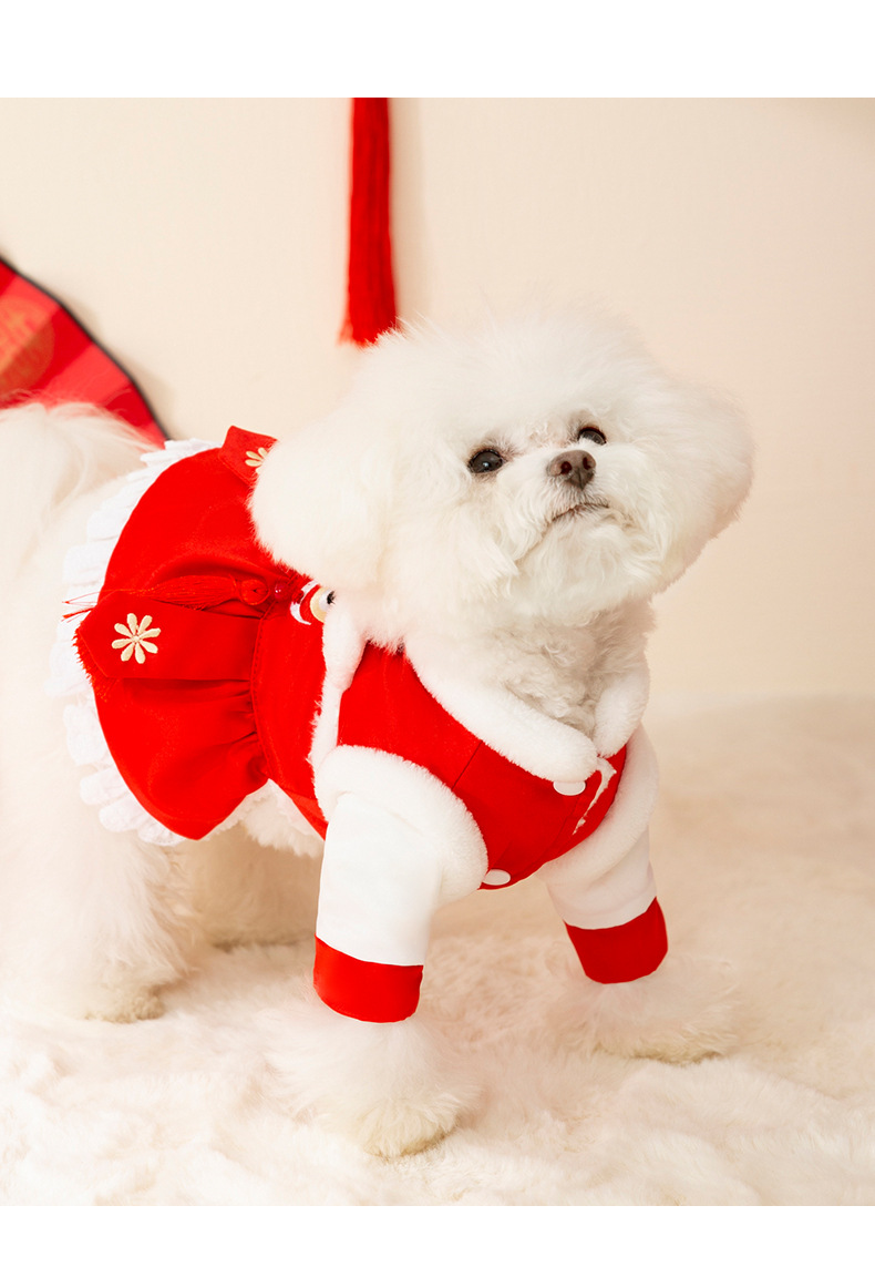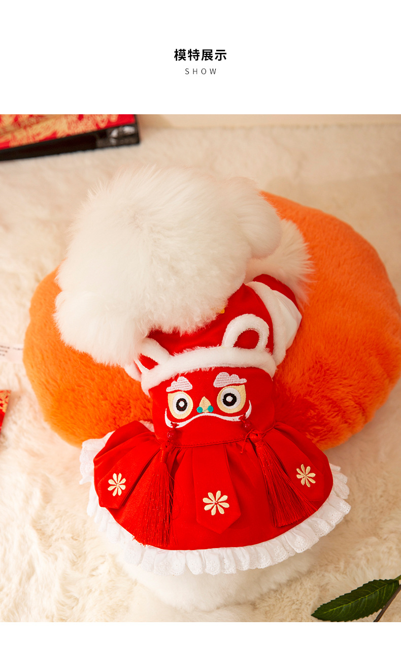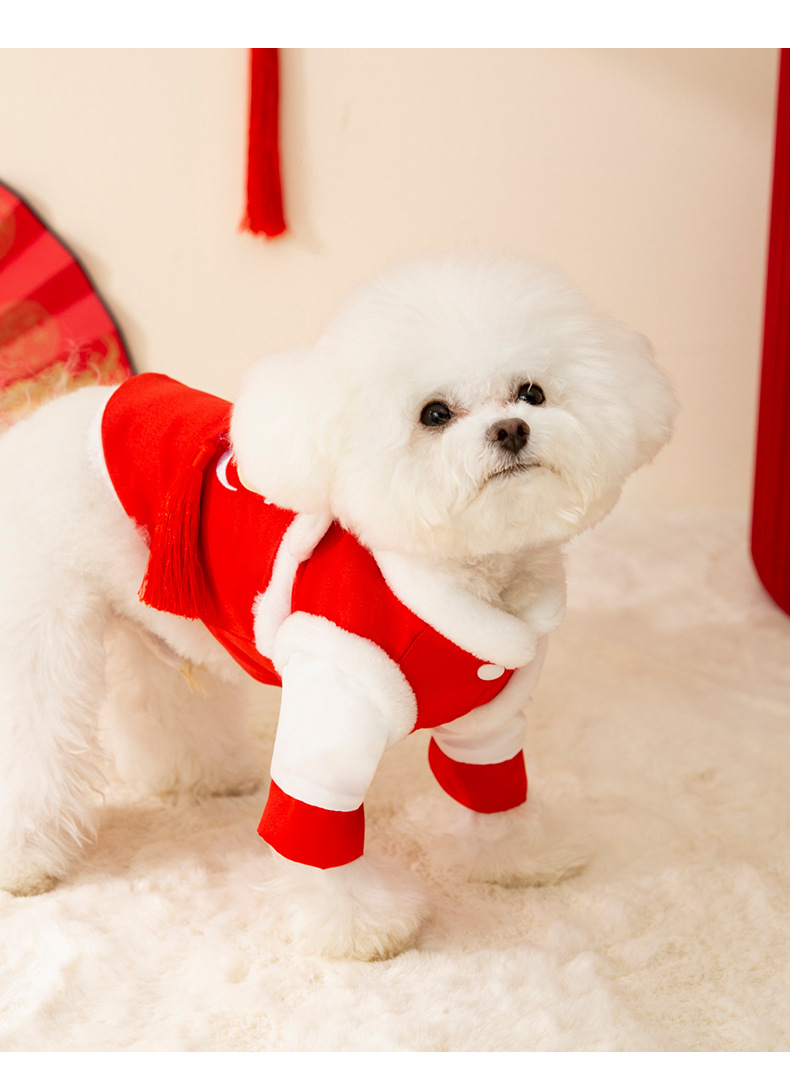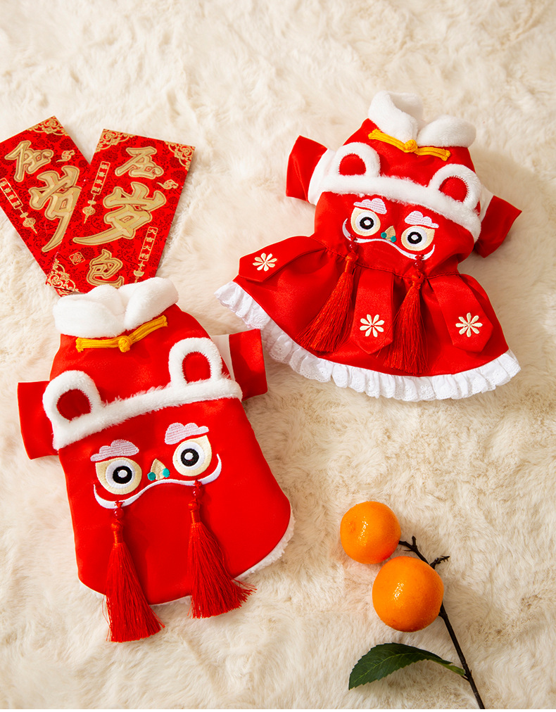 Año nuevo mascota Tang traje León danza pareja ropa de algodón acolchado ropa de Año Nuevo ropa de perro festivo gato dos pies ropa de perro caliente