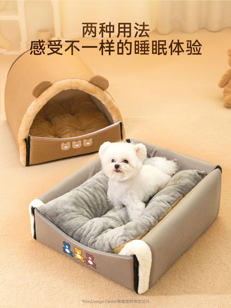 Otoño e invierno perro curvo casa perrera mediano y pequeño perro mongol bolsa mascota nido gato oso semi-cerrado tienda