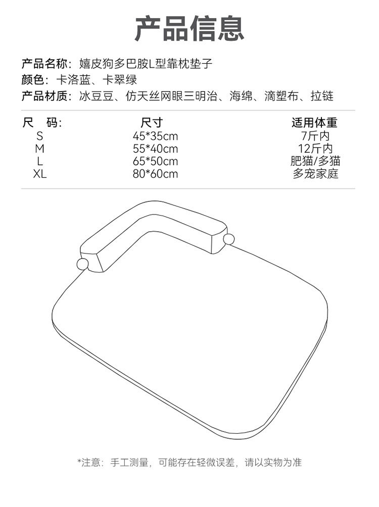 | Color | S: 45 * 35cm (recomendado dentro de 7 kg), m: 55 * 40cm (recomendado dentro de 12 kg), l: 65 * 50cm (para gatos gordos), xl: 80 * 60cm (para familias multimascotas) |
