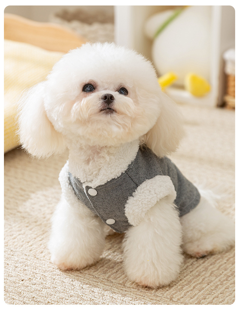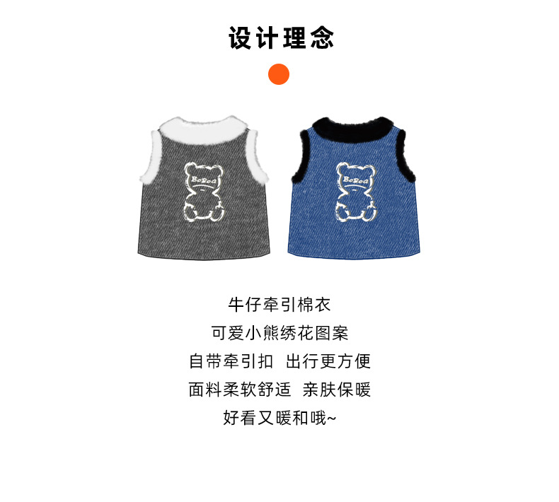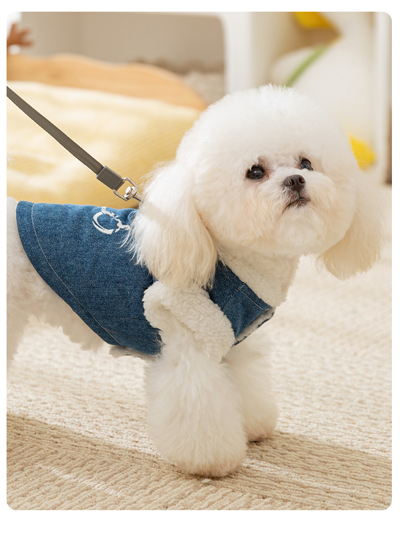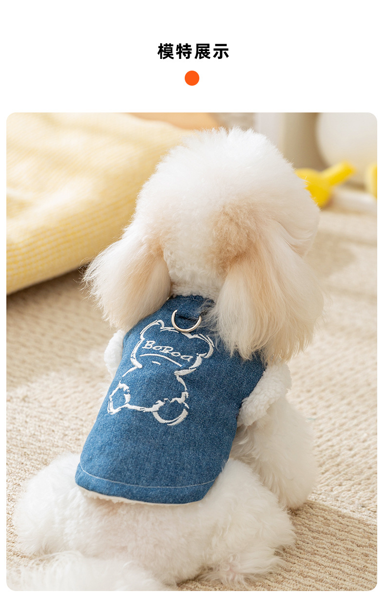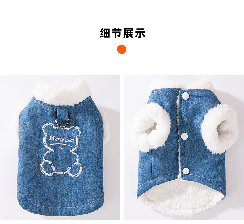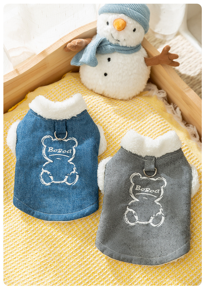 Otoño y invierno perros perros pequeños y medianos osos coreanos bordados vaqueros tracción algodón gato peluche ropa de perro