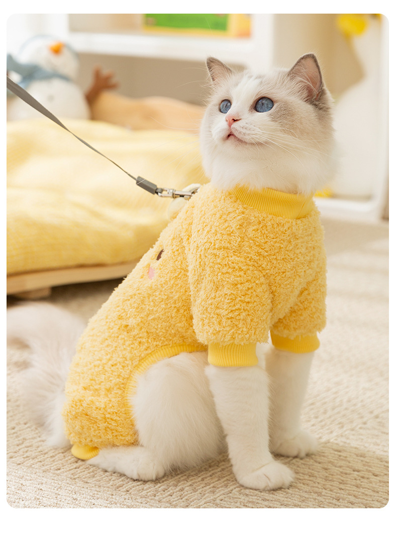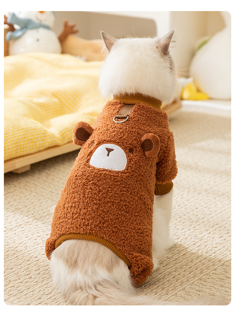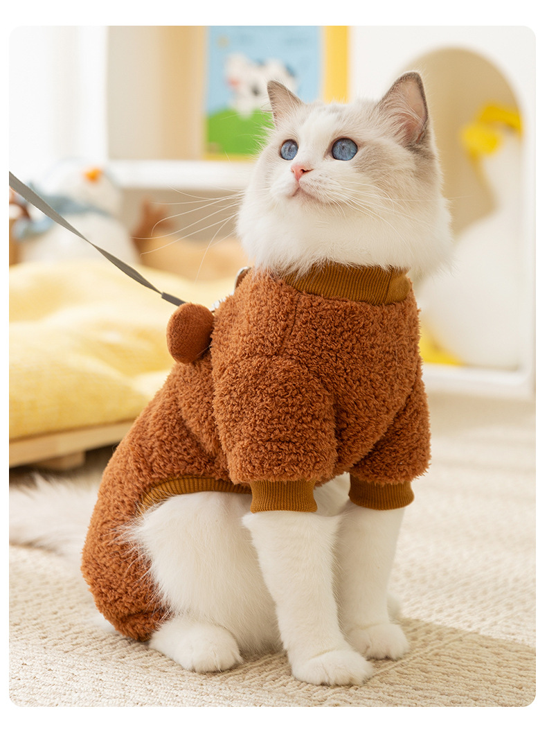Otoño e invierno, gato, animal divertido, felpa de cuatro patas, gato sin pelo, abrigo, peluche, oso, ropa de gato para mascotas gruesa