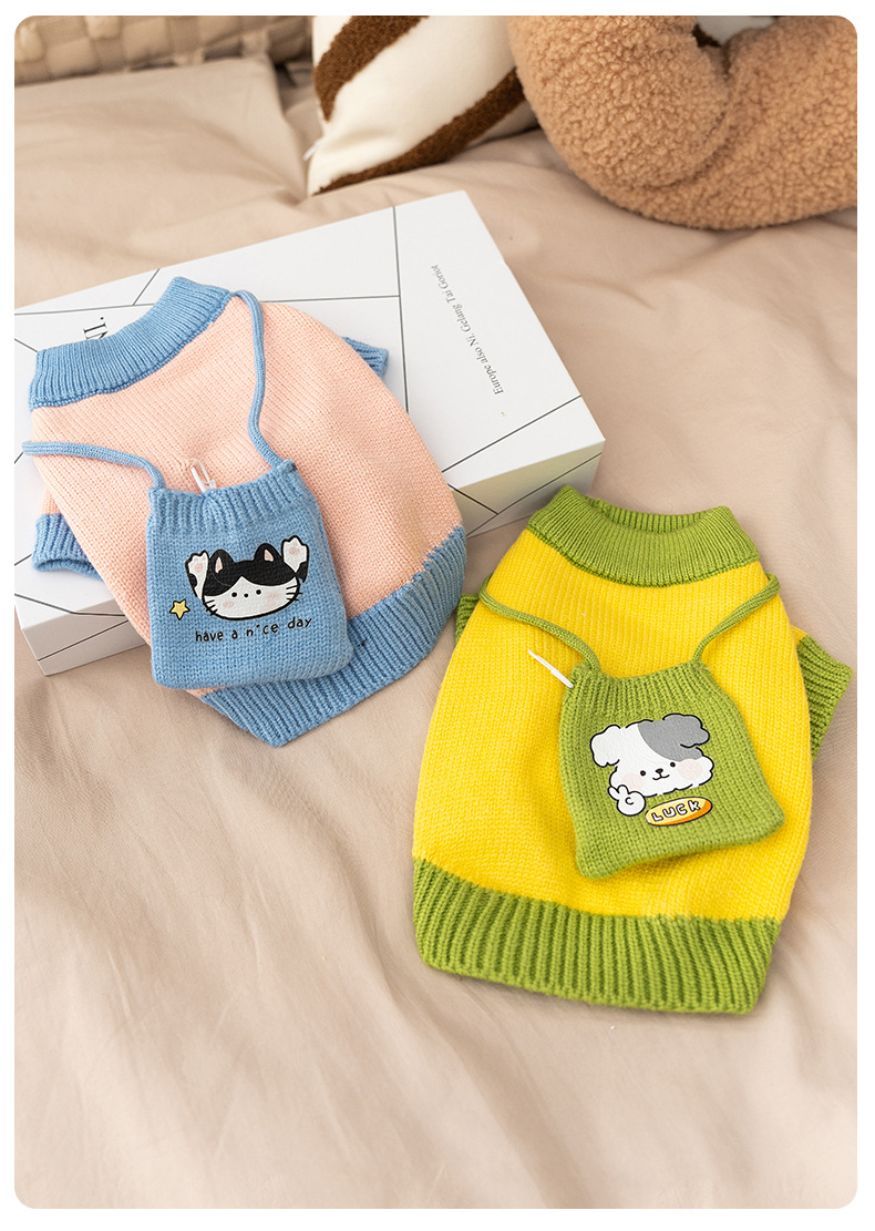 Otoño y invierno perros dos pies lindos bolsos de punto suéter gato mochila camiseta de punto Teddy Bear ropa de mascotas