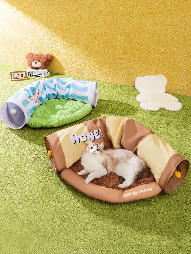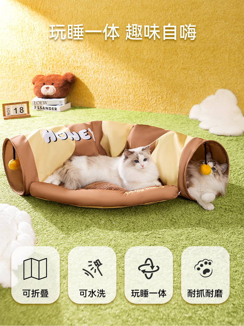 Jugar y dormir en cuatro estaciones, seguridad plegable, laberinto, túnel de gatos, nido de gatos desmontable y lavable, piso rodante, nido de mascotas