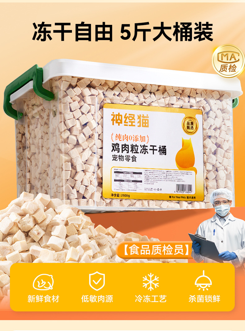 Gatos de gran capacidad de 5 kg de paquete de pollo, barril liofilizado para perros pequeños y medianos, bocadillos para perros, alimentos para mascotas.