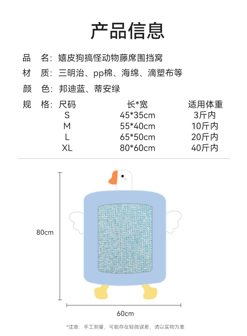 Primavera y verano perros extraños animales gansos blancos esterilla de caña cercada perros mascotas nido de perros gato nido de esterilla gato nido