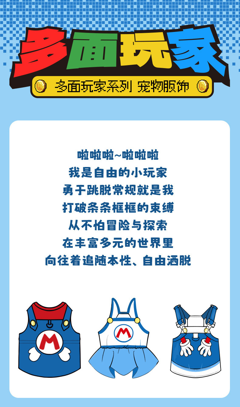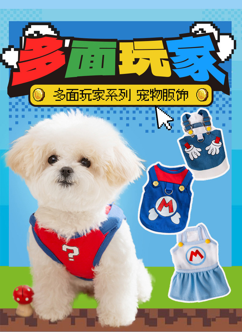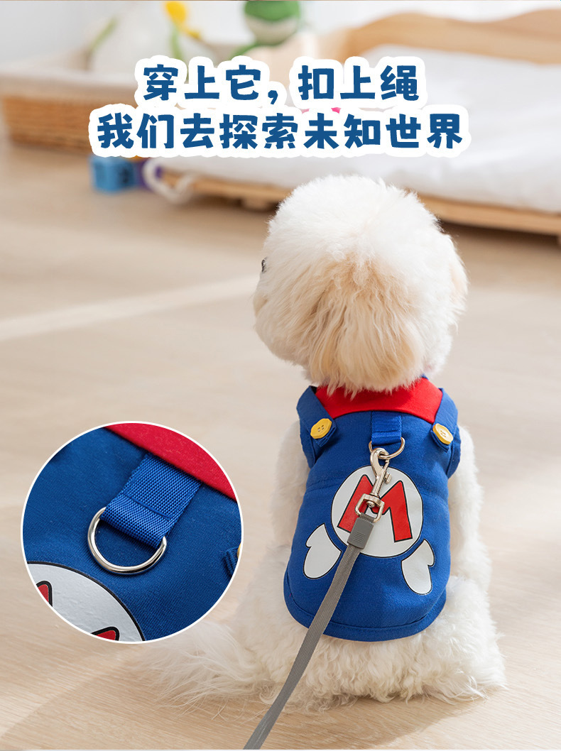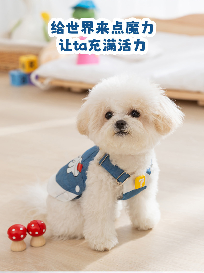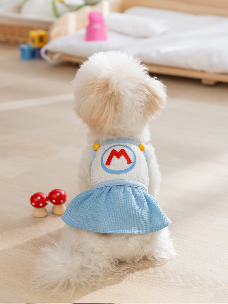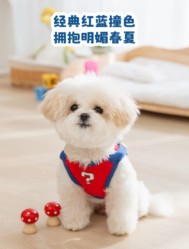 Primavera y verano nuevo estilo perro multifacético jugador serie falda gato chaleco de dos patas peluche bichón ropa para perros