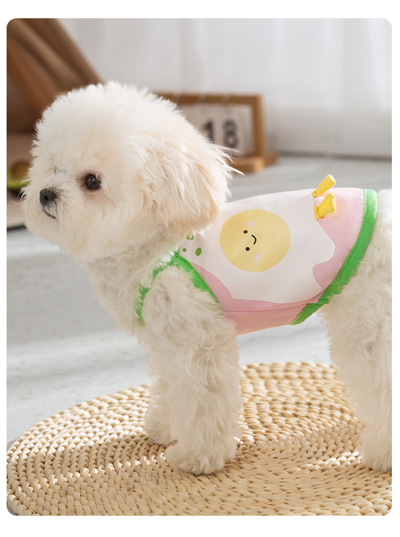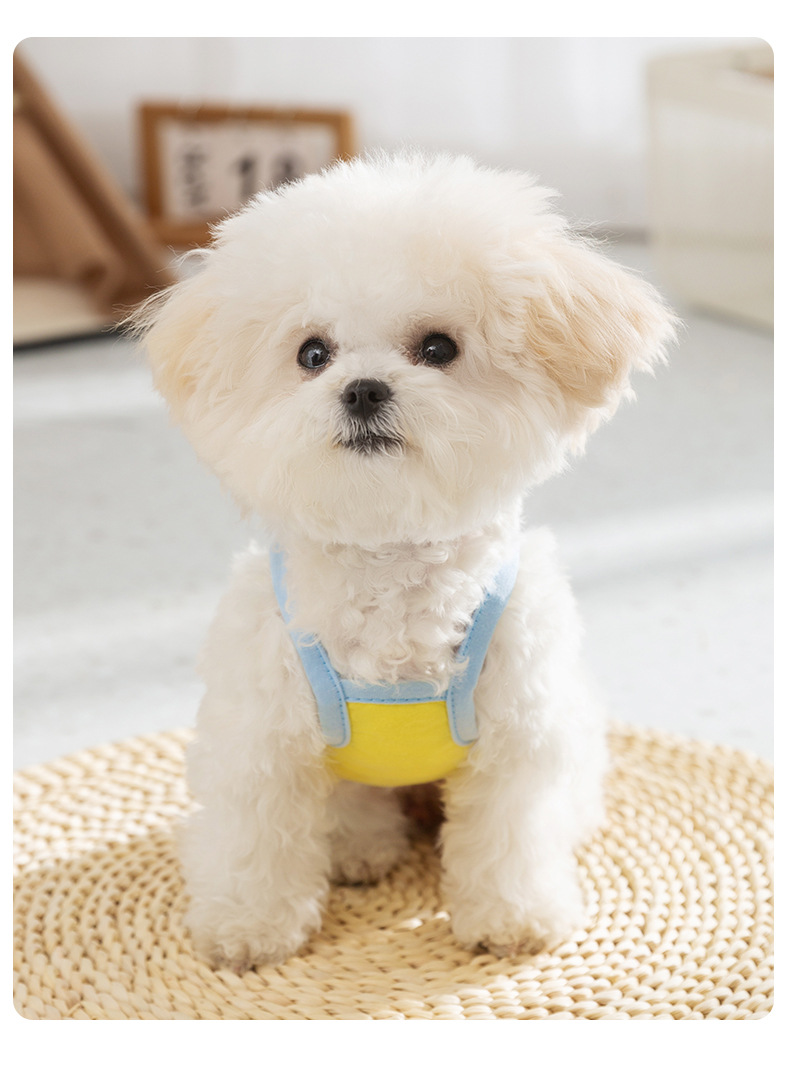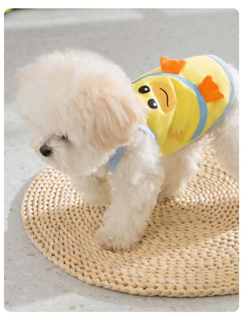 Primavera y verano perro de dibujos animados contraste color lindo gato cabestrillo dos pies delgados oso de peluche chaleco ropa para perros mascotas