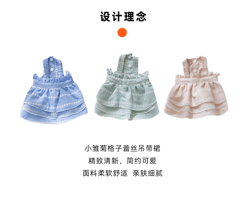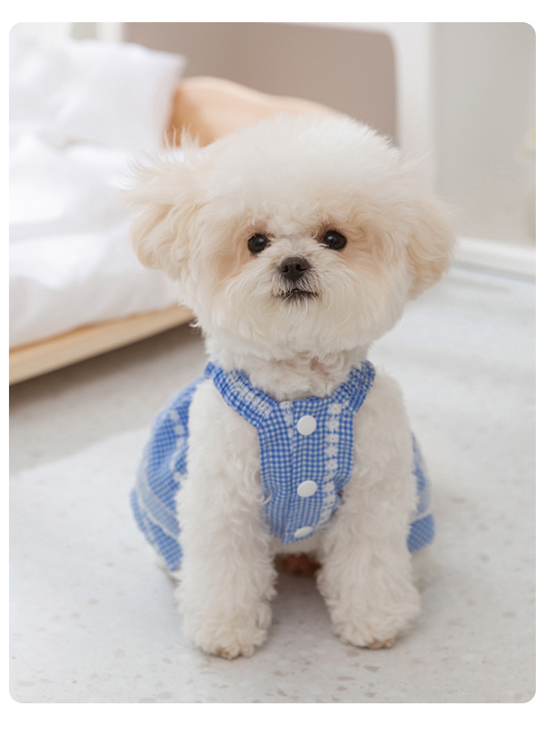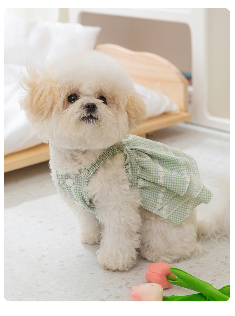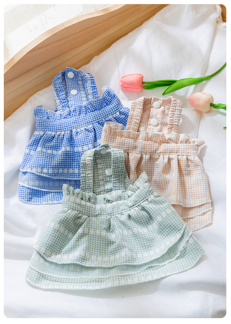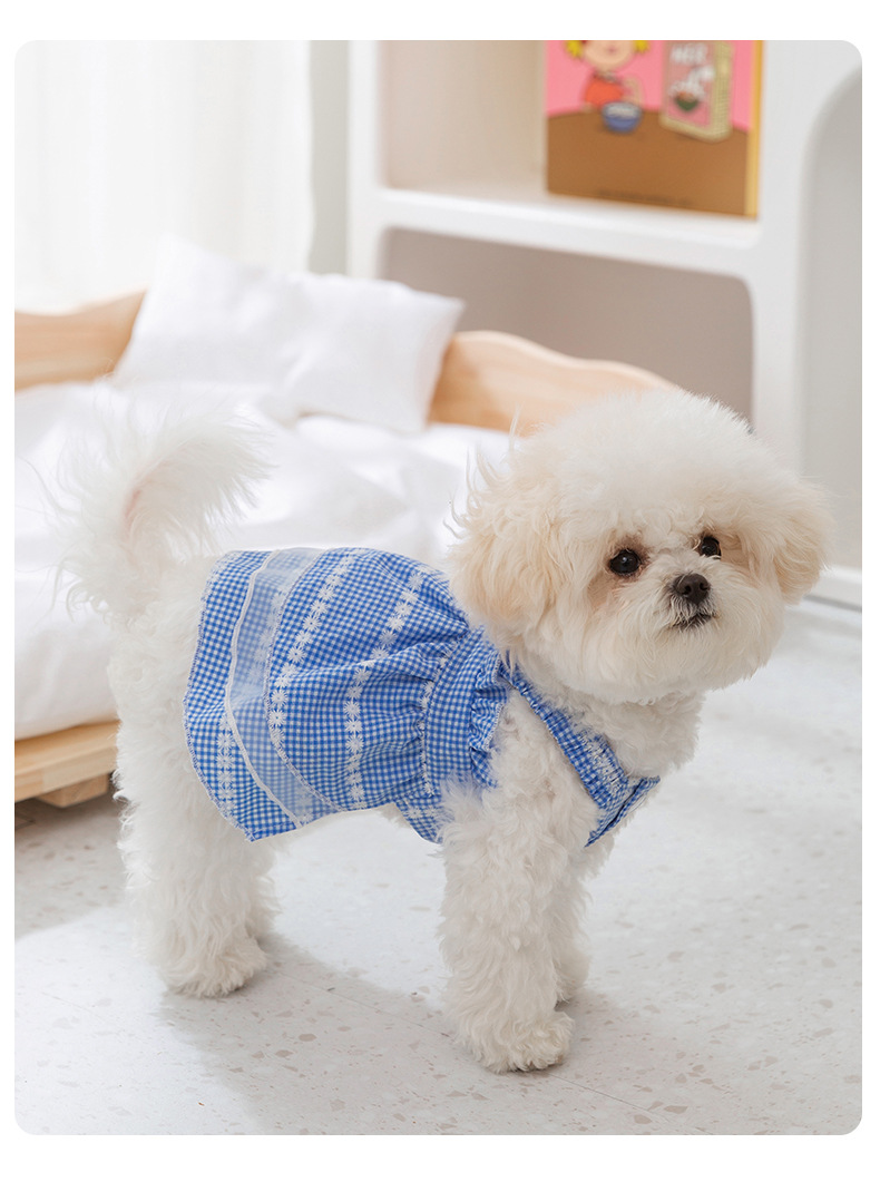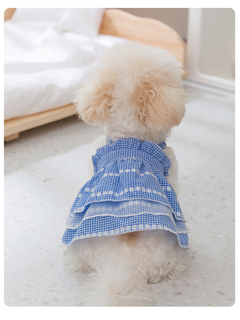 Primavera y verano perro princesa estilo Daisy Plaid falda de encaje Liga pies gato vestido ropa para mascotas