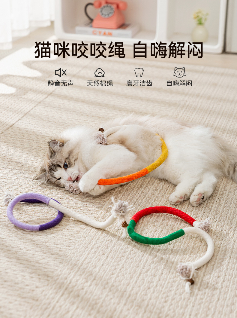 Juguete de cuerda de mordedura de gato auto-Hola aliviando artefacto tapado molar catnip resistente a la mordedura gatito divertido gato palo suministros