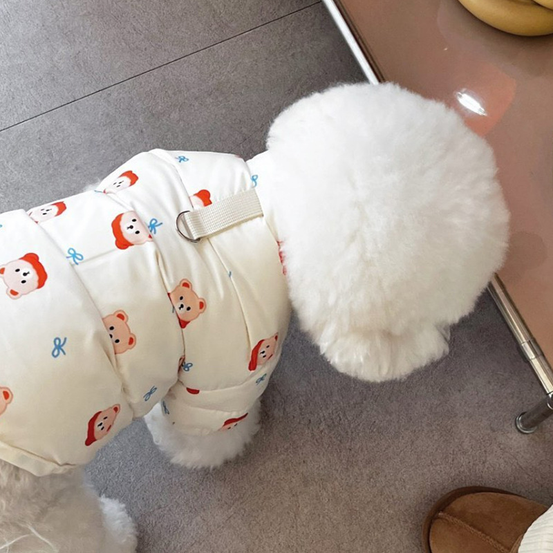 Japonés y coreano lindo estilo coreano Otoño e Invierno perro lindo oso completo impreso ropa de algodón acolchado mascota gato ropa de peluche caliente