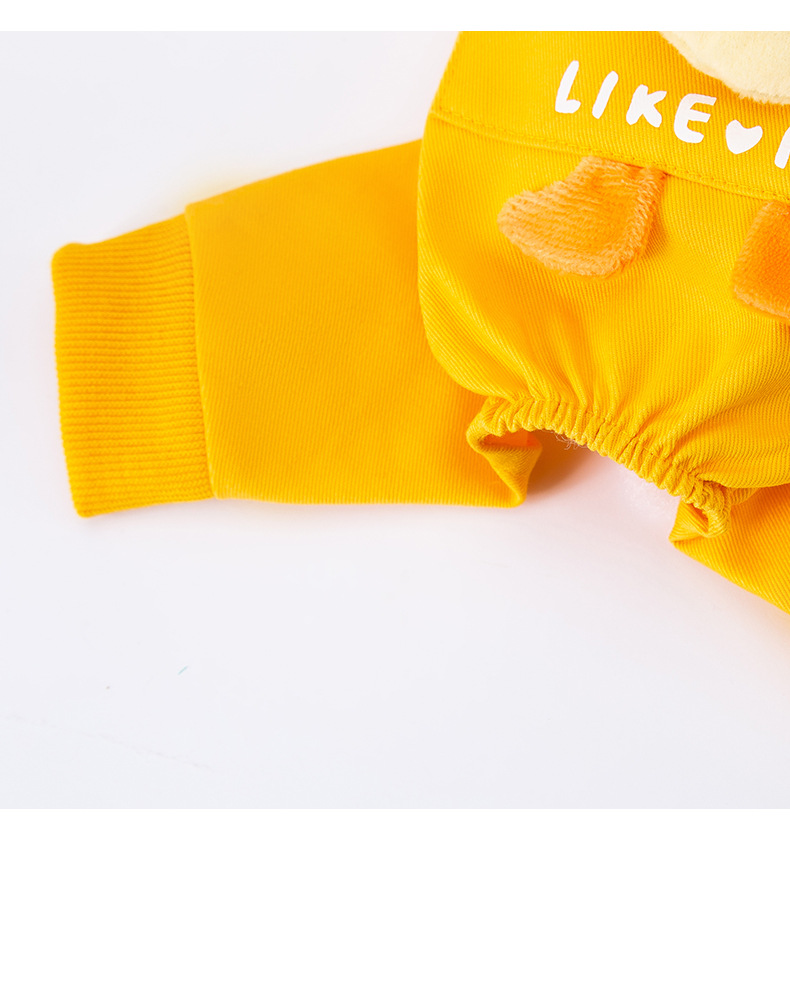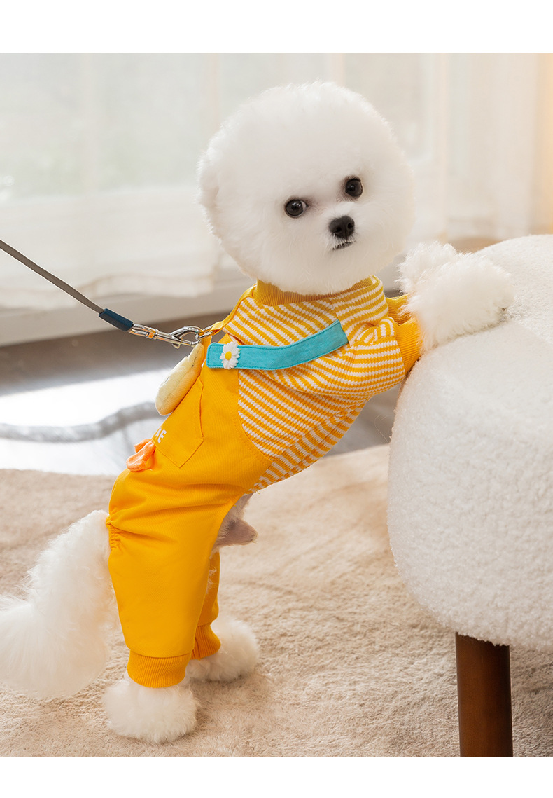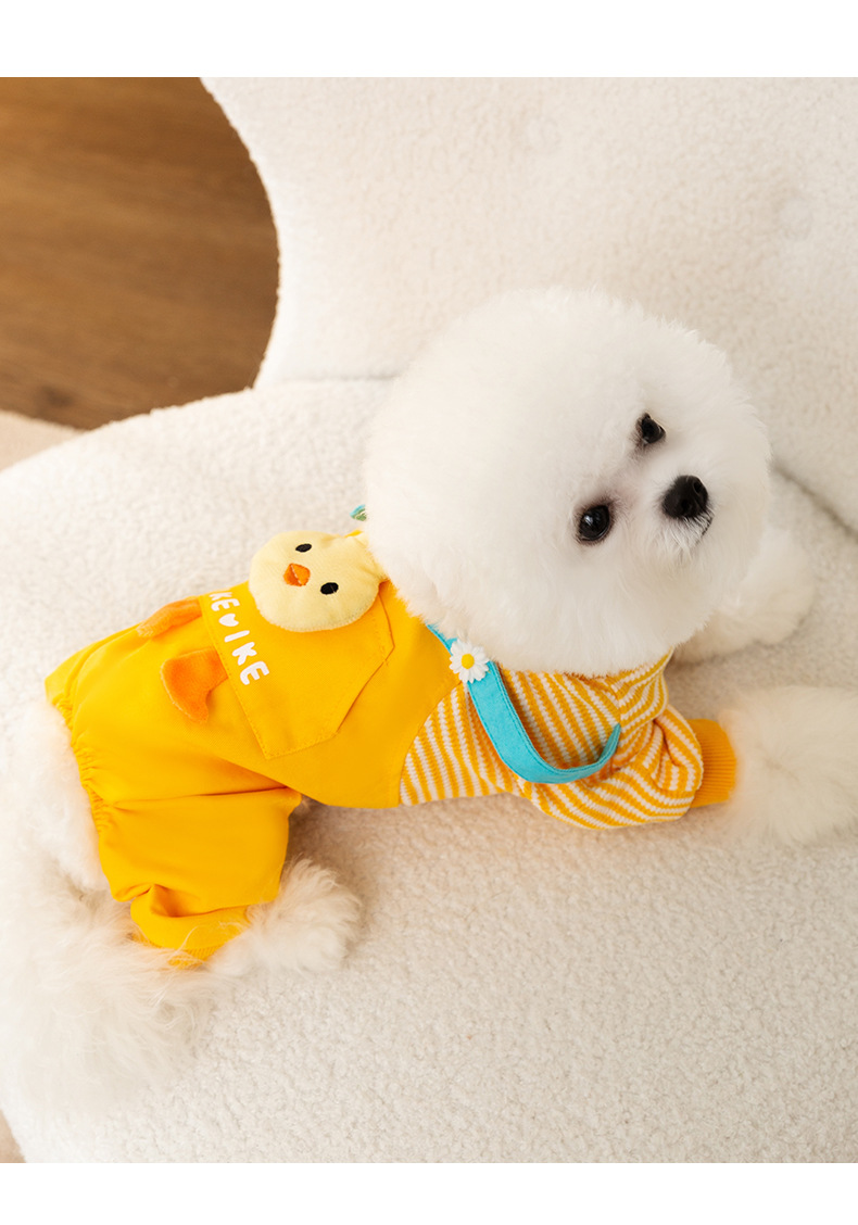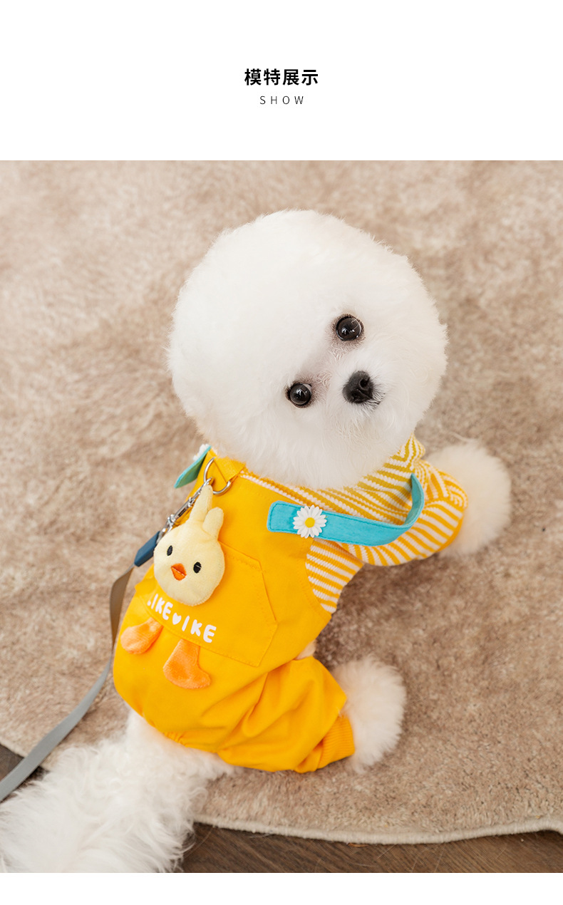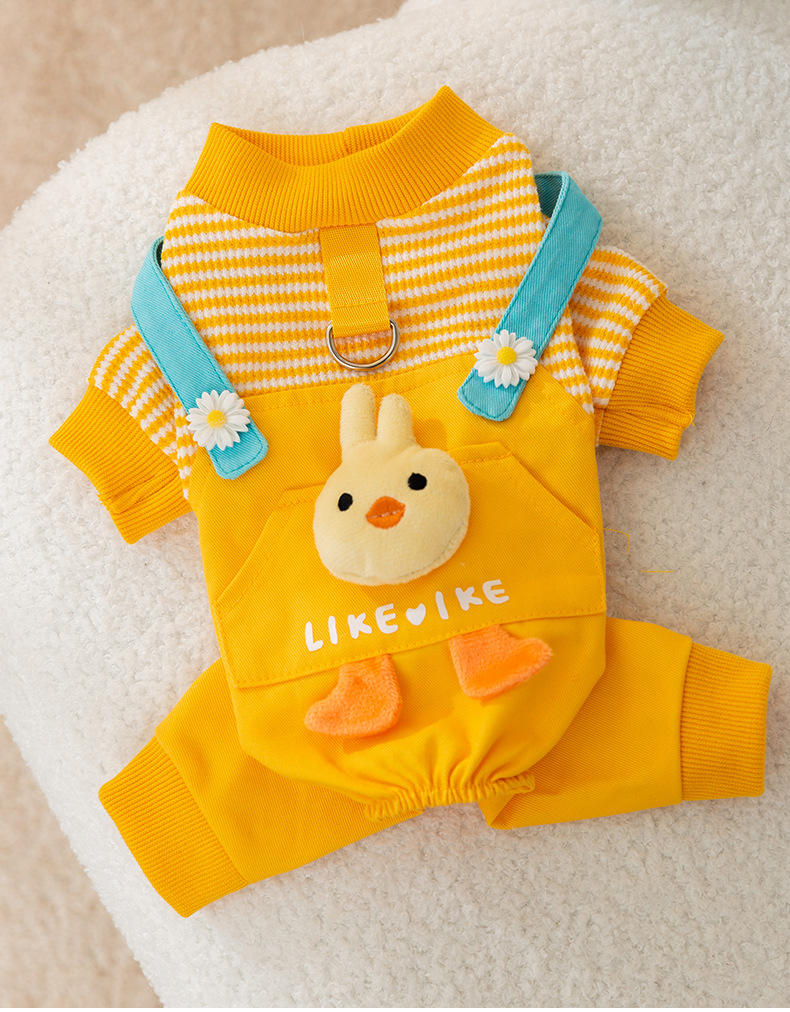 Otoño e invierno perro tridimensional pollo tracción tirantes pantalones gato mascota de cuatro patas cálido forrado de lana ropa de perro de peluche