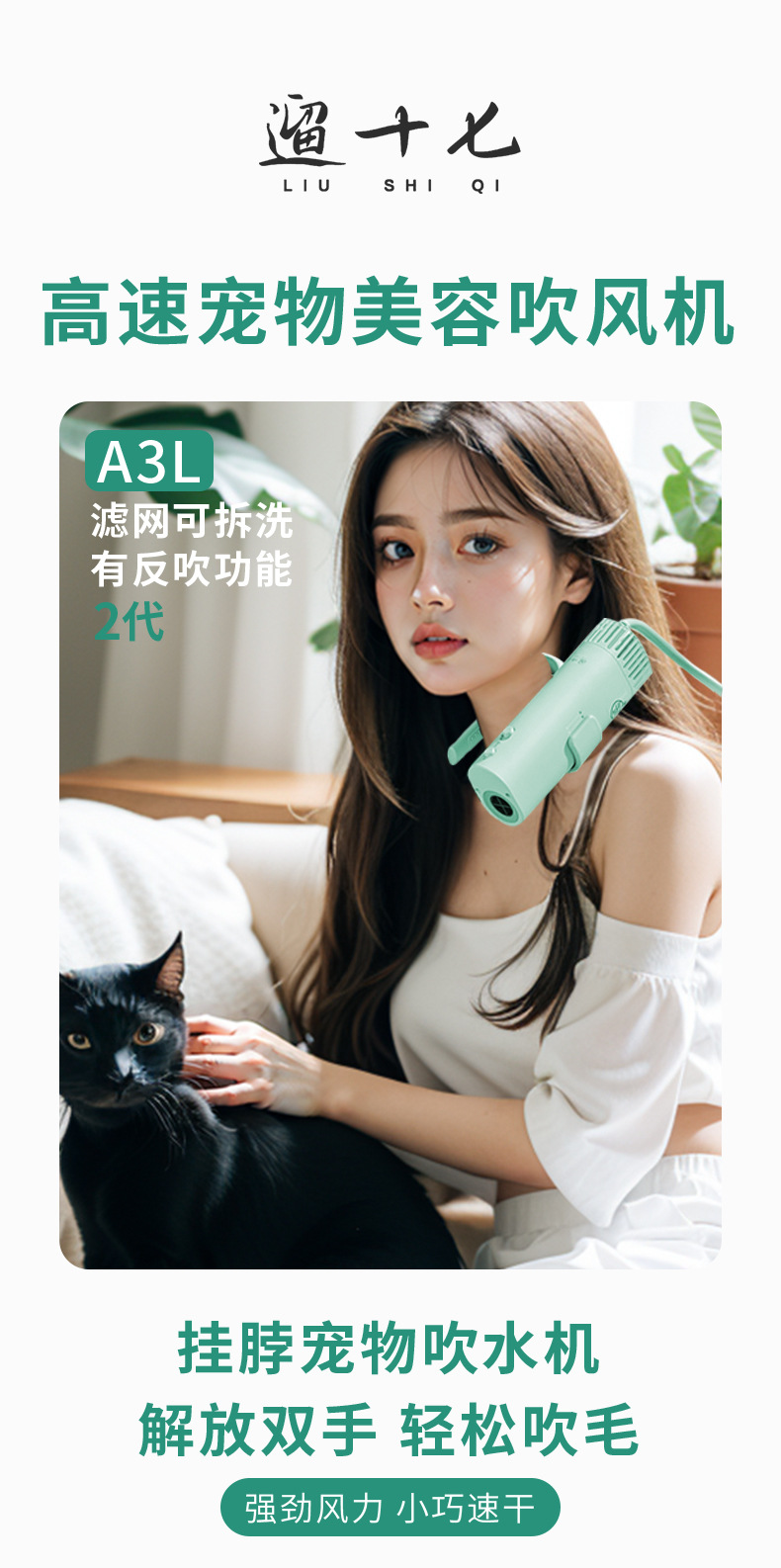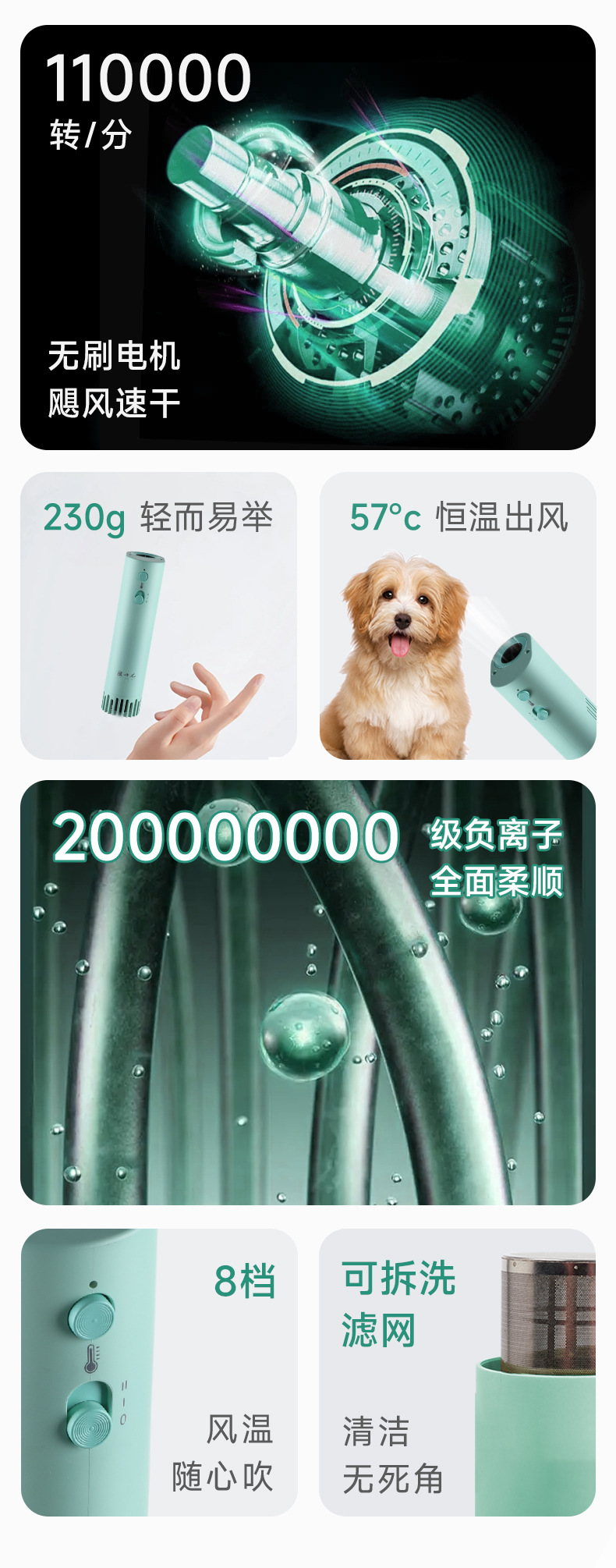 Peluquería para mascotas, secador de pelo, gran viento de doble velocidad, cuello halter, perro, gato, soplador de agua, soporte para cuello halter, soplador de pelo