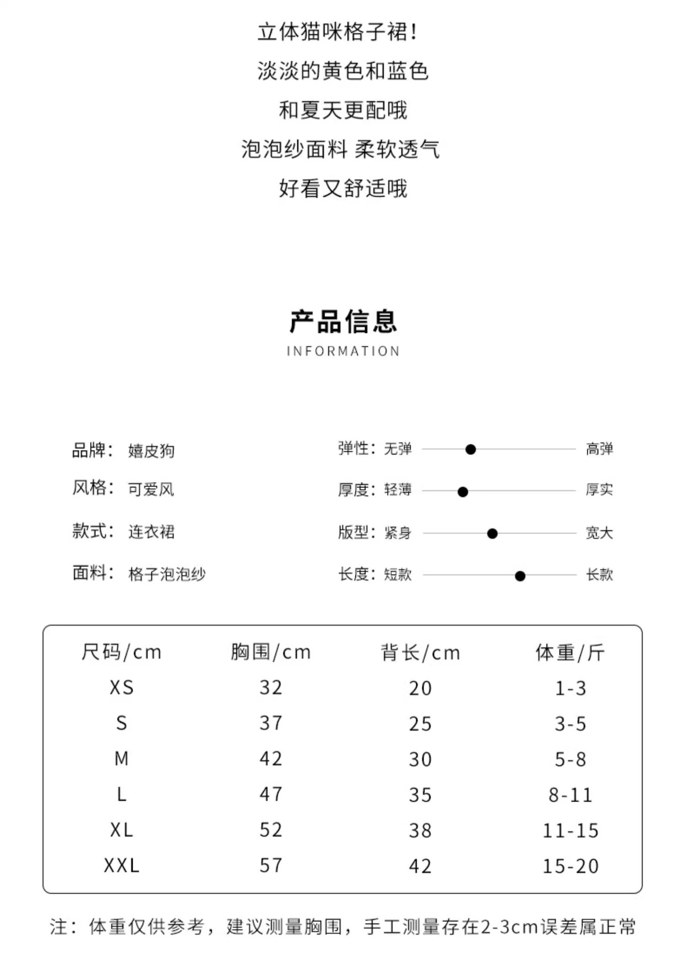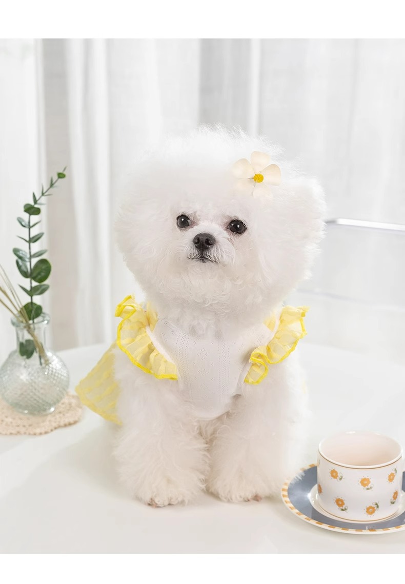 Primavera y verano perro tridimensional gato a cuadros vestido Teddy pequeño perro falda delgada transpirable perro mascota ropa