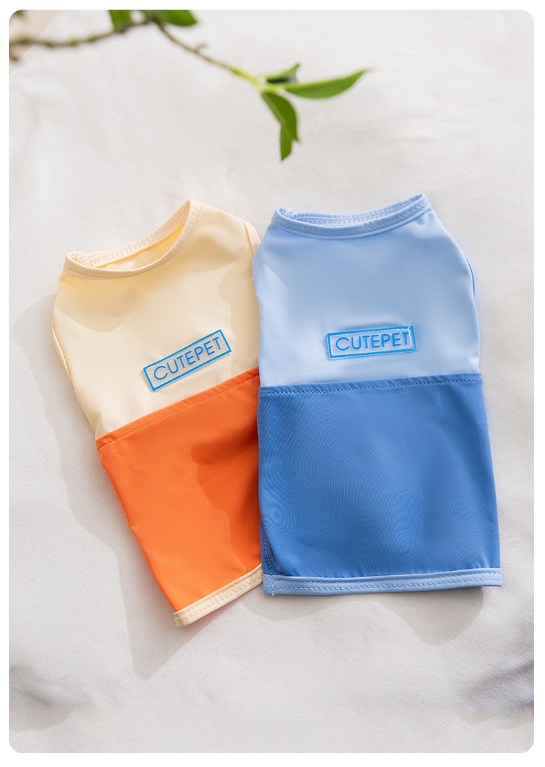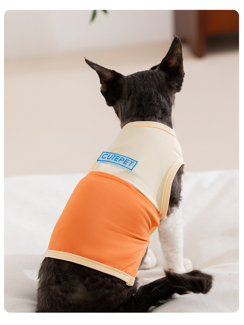 Gato primavera verano transpirable estilo fino contraste costura simple chaleco perro peluche bichón ropa de oso mascota ropa de gato