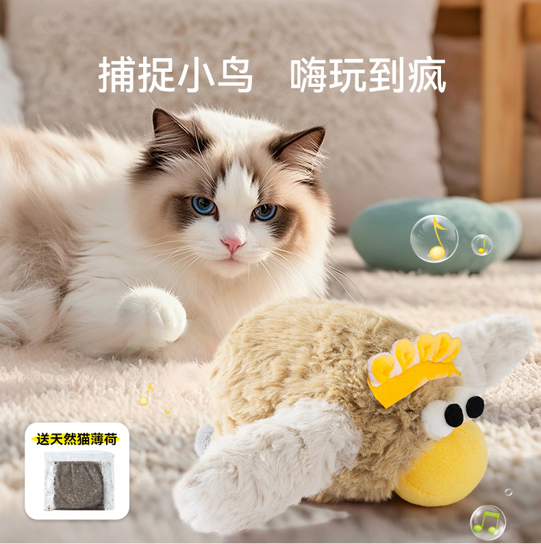 El gato tiembla, el pájaro dorado, el juguete eléctrico de sonido de felpa, el perro está feliz de acompañar, el juguete interactivo para gatos, los productos para gatos