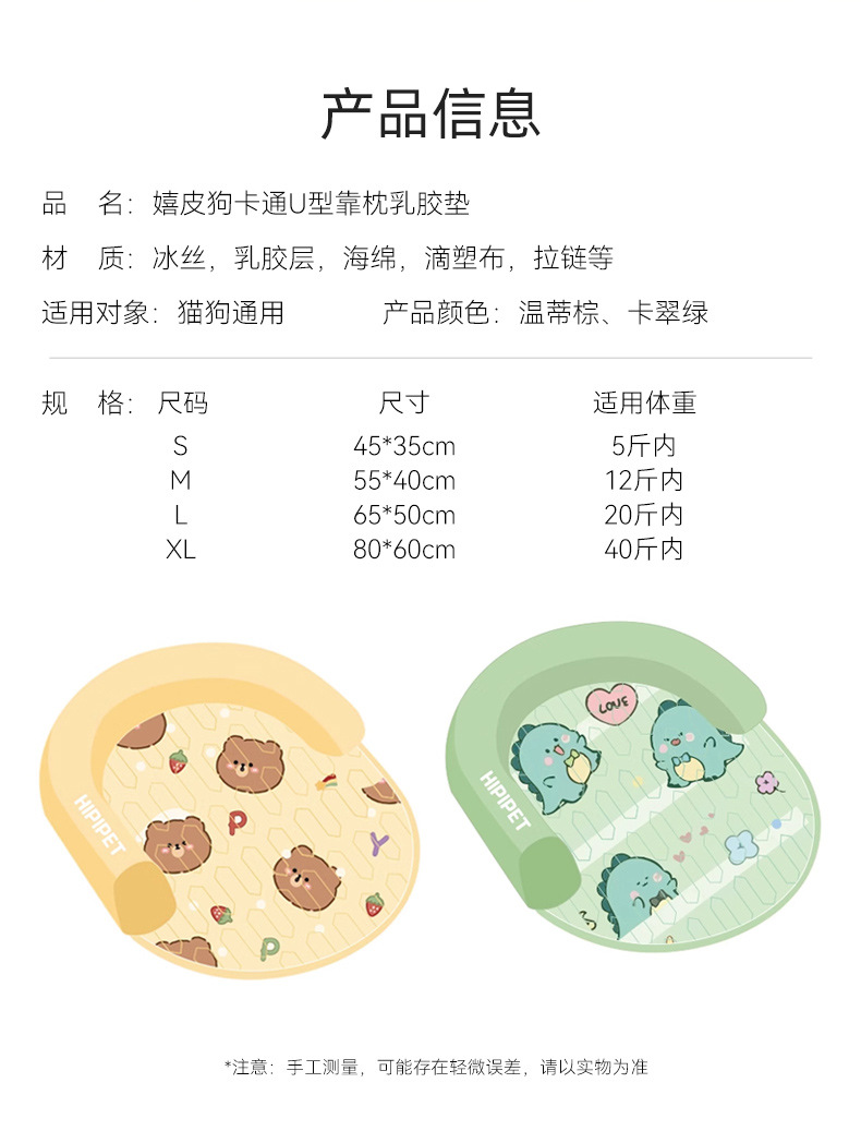 Primavera y verano, gato, fresco y fresco, almohada en forma de U de dibujos animados, cojín de látex, sofá para perros, caseta para gatos, caseta para perros, caseta para mascotas