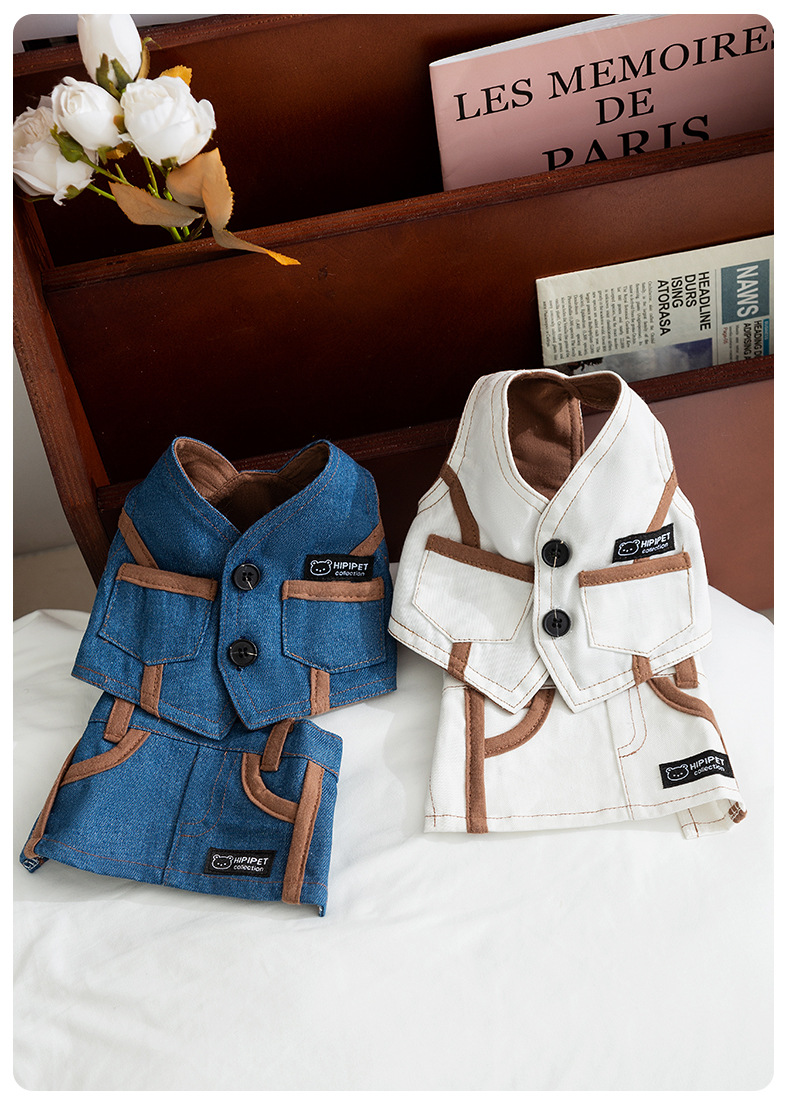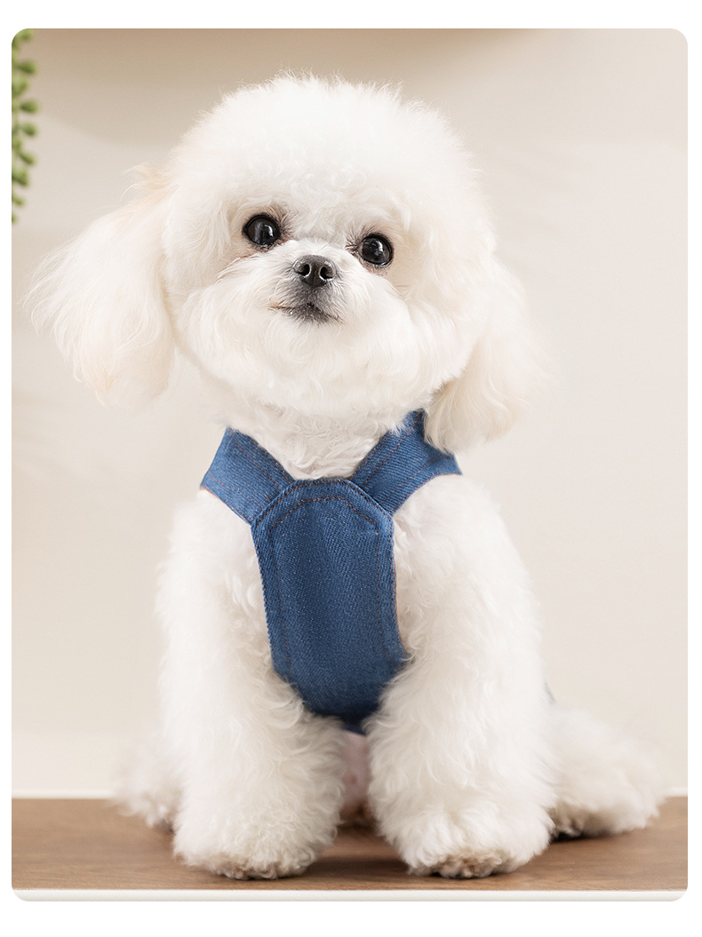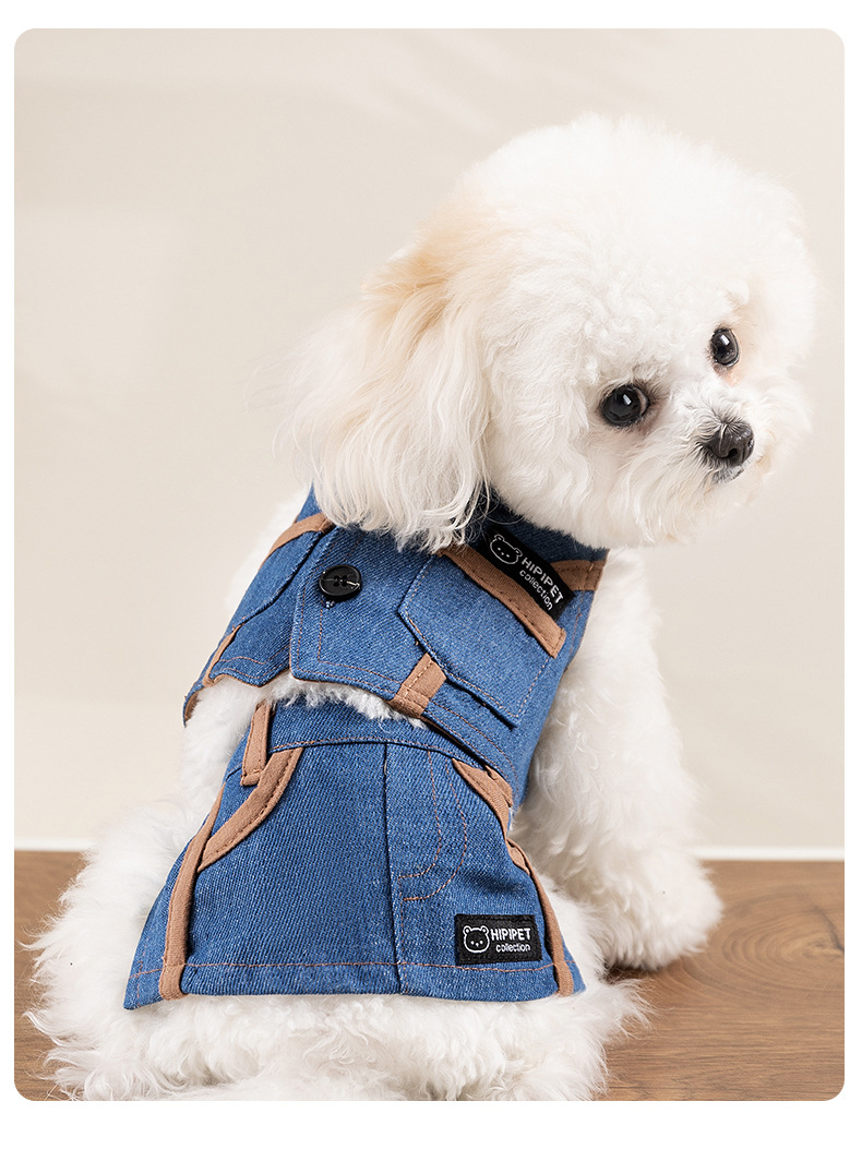 Moda coreana primavera y verano perro chaleco de mezclilla falda traje perro pequeño y mediano peluche ropa coreana para perros