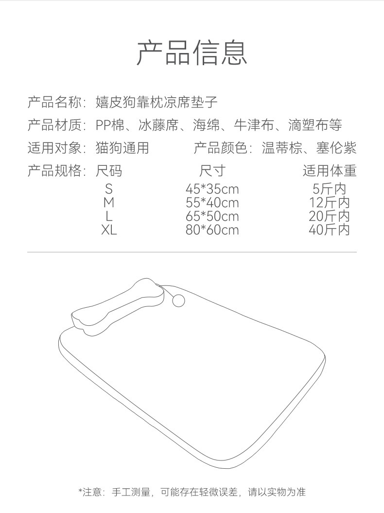 XL:80*60 (peso recomendado dentro de 40 kg)