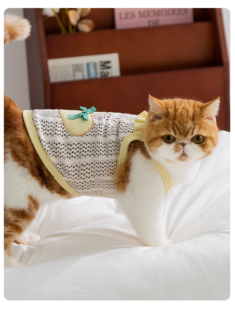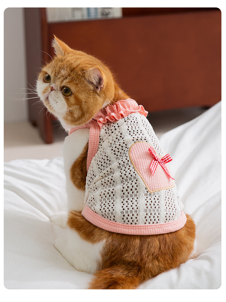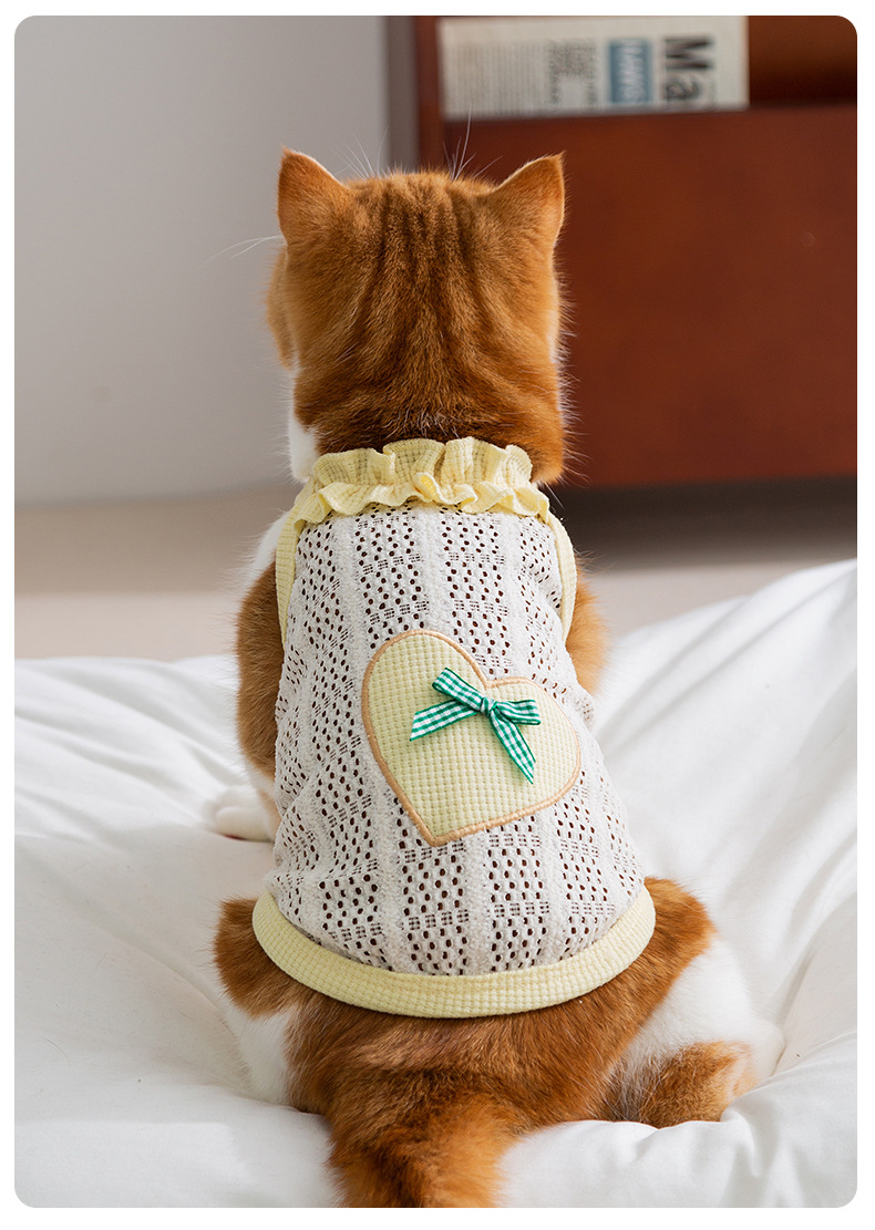 Primavera y verano gatito amor arco eslingas gatito pequeño gatito lindo perro Teddy ropa de mascotas