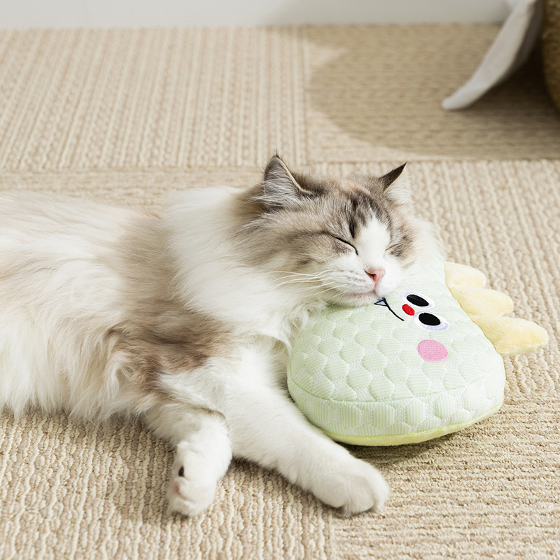 Perro primavera y verano pequeño dinosaurio frijoles frijoles almohada fresca para gatos dormir almohada de cuello almohada cuadrada almohada de mascotas cuatro estaciones