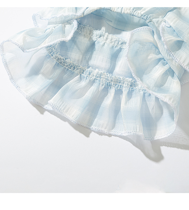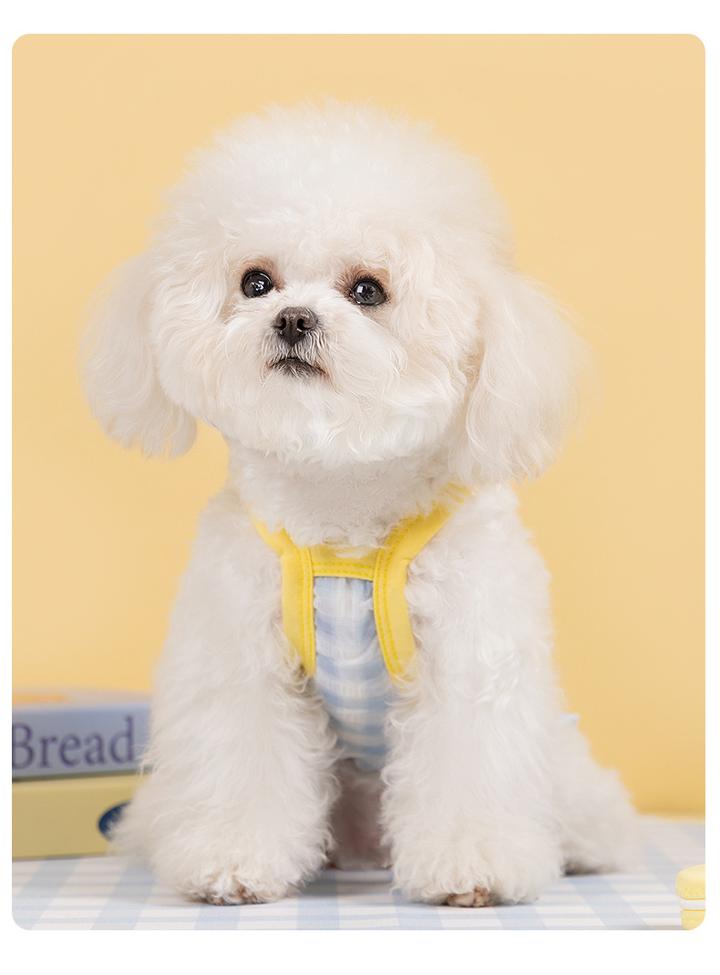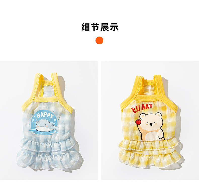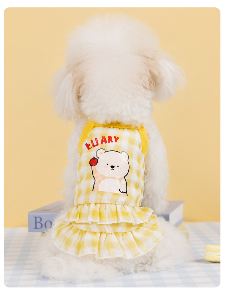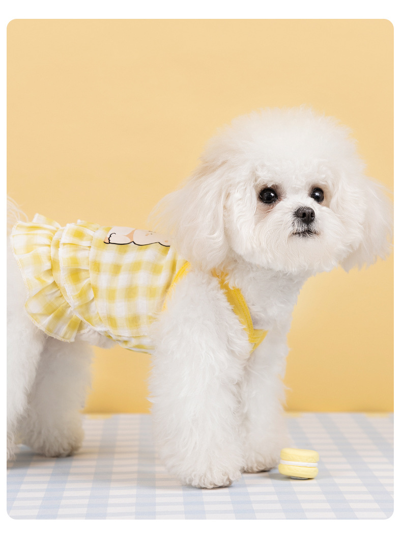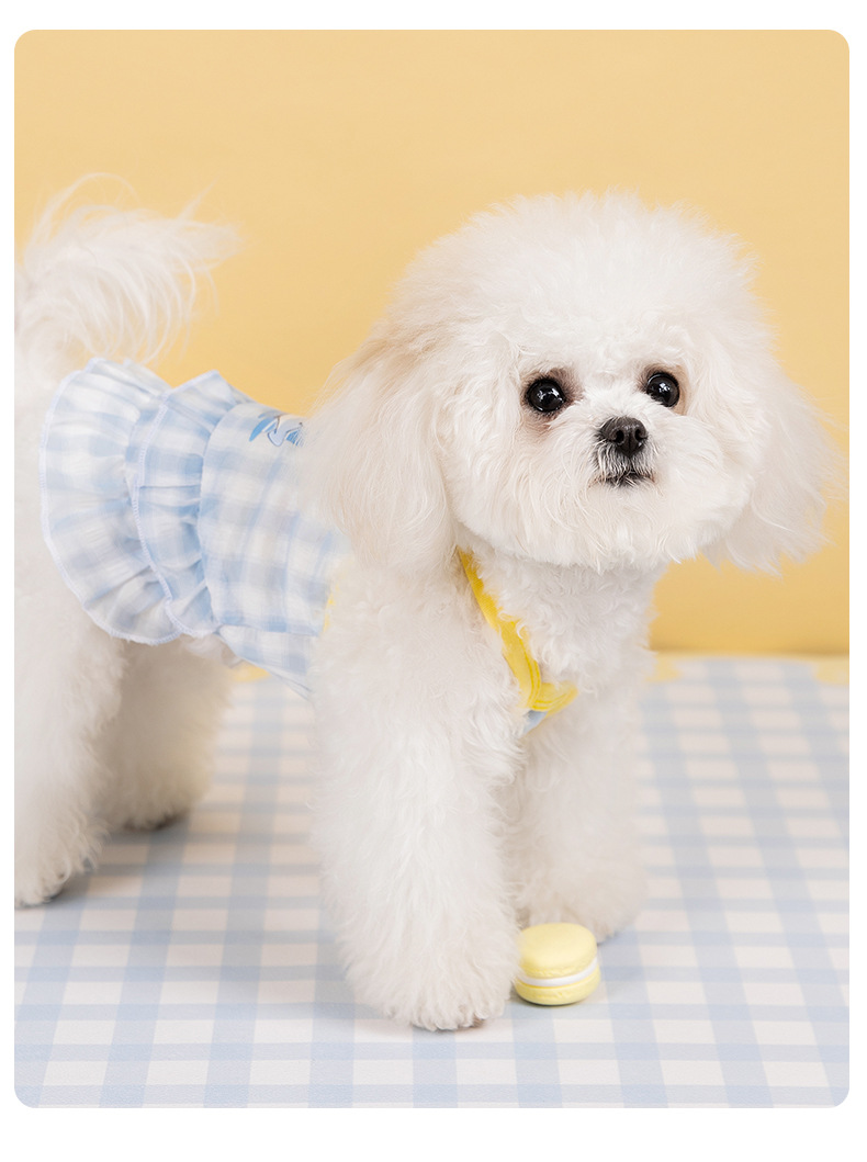 Primavera y verano perros frescos macarón cuadriculado vestido de tira de dibujos animados felino vestido de verano ropa de perro Teddy