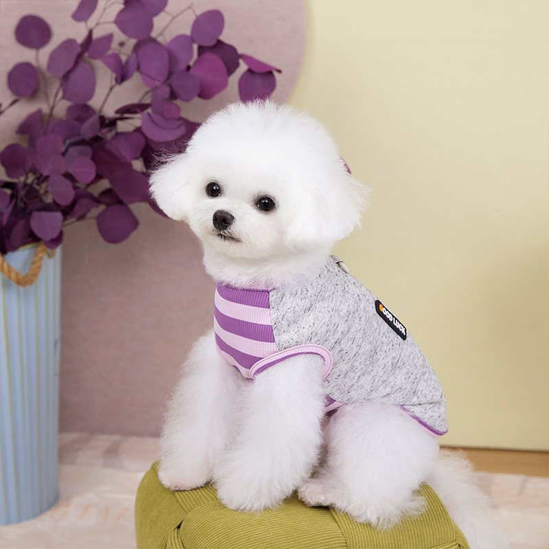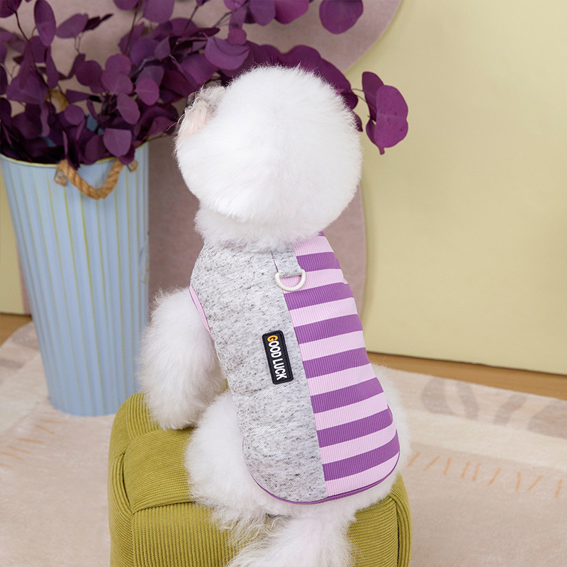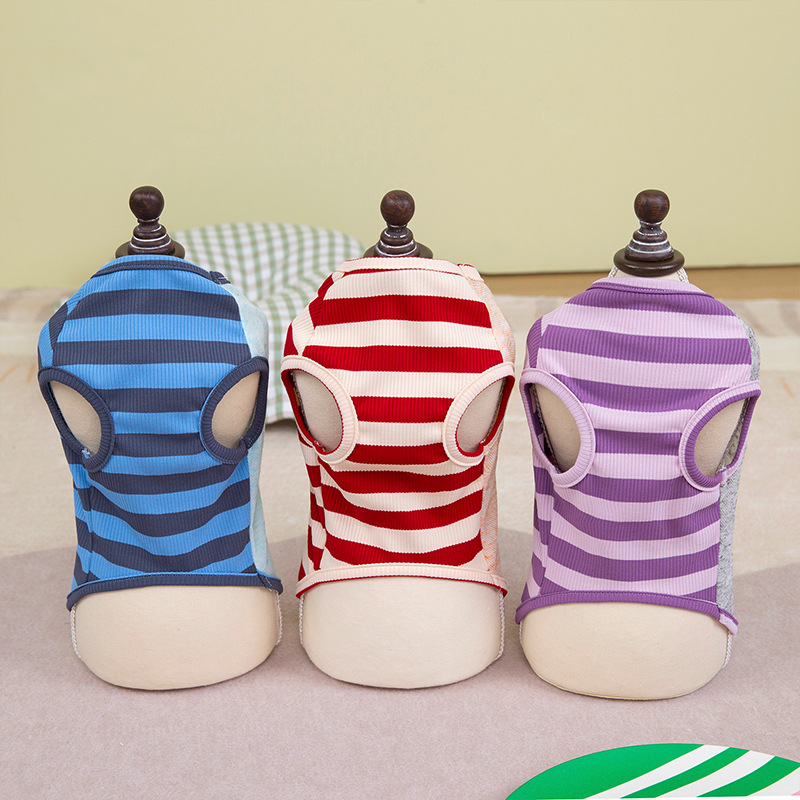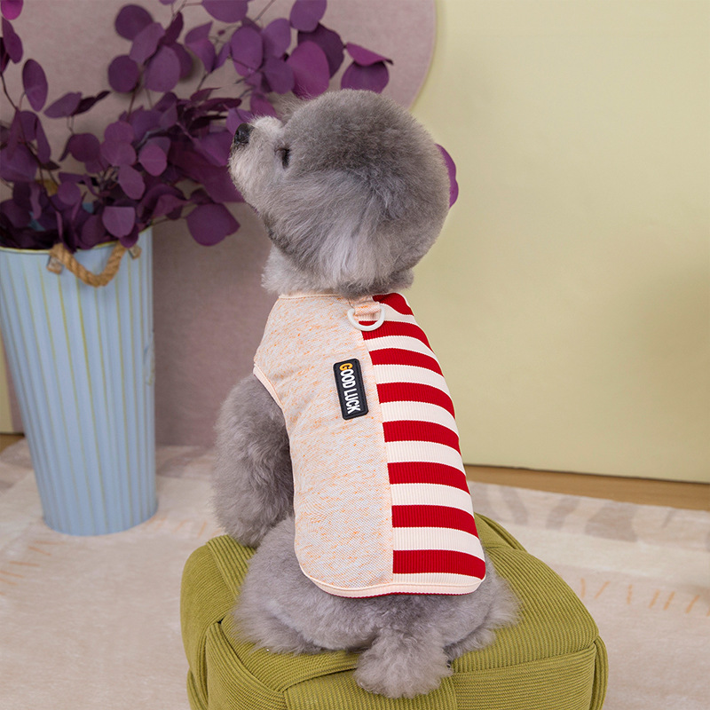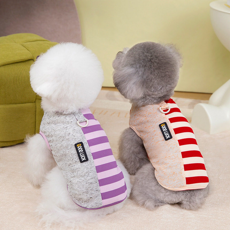 Primavera y verano perros delgados transpirables de color contraste chaleco a rayas de piano perros pequeños y medianos gatos peluche ropa de perro
