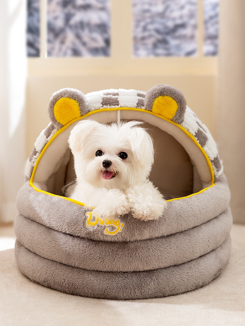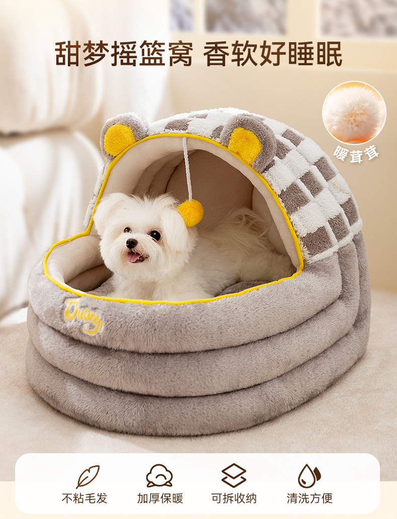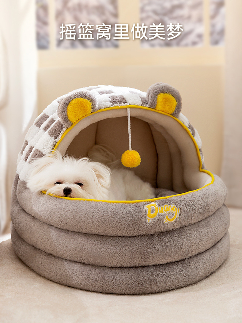 Otoño y invierno caliente y grueso semicerrado perros de peluche pequeño dormir profundamente casa de perros cuna gato gato gato mascota nido